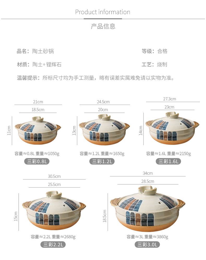 【进口锂辉石】三彩砂锅煲 款式随机 家用 炖锅燃气 煲仔饭 沙锅 煲汤 煤气灶 专用 肆月