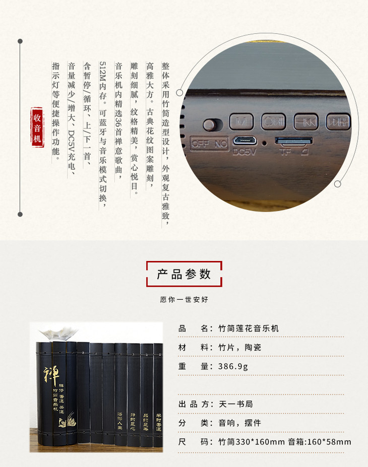 天一书局出品 竹简莲花香器 书卷式音响香器茶道礼盒套装