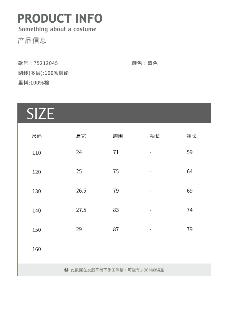 参考身高: 110cm 120cm 130cm 140cm 150cm