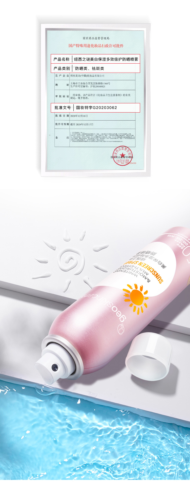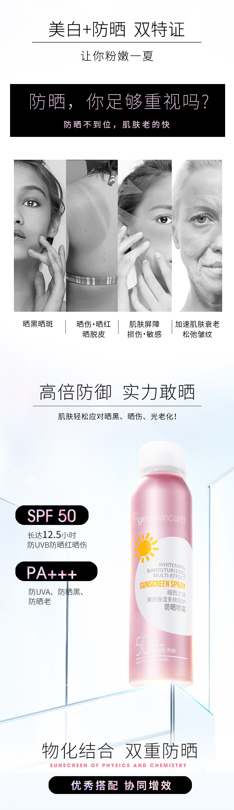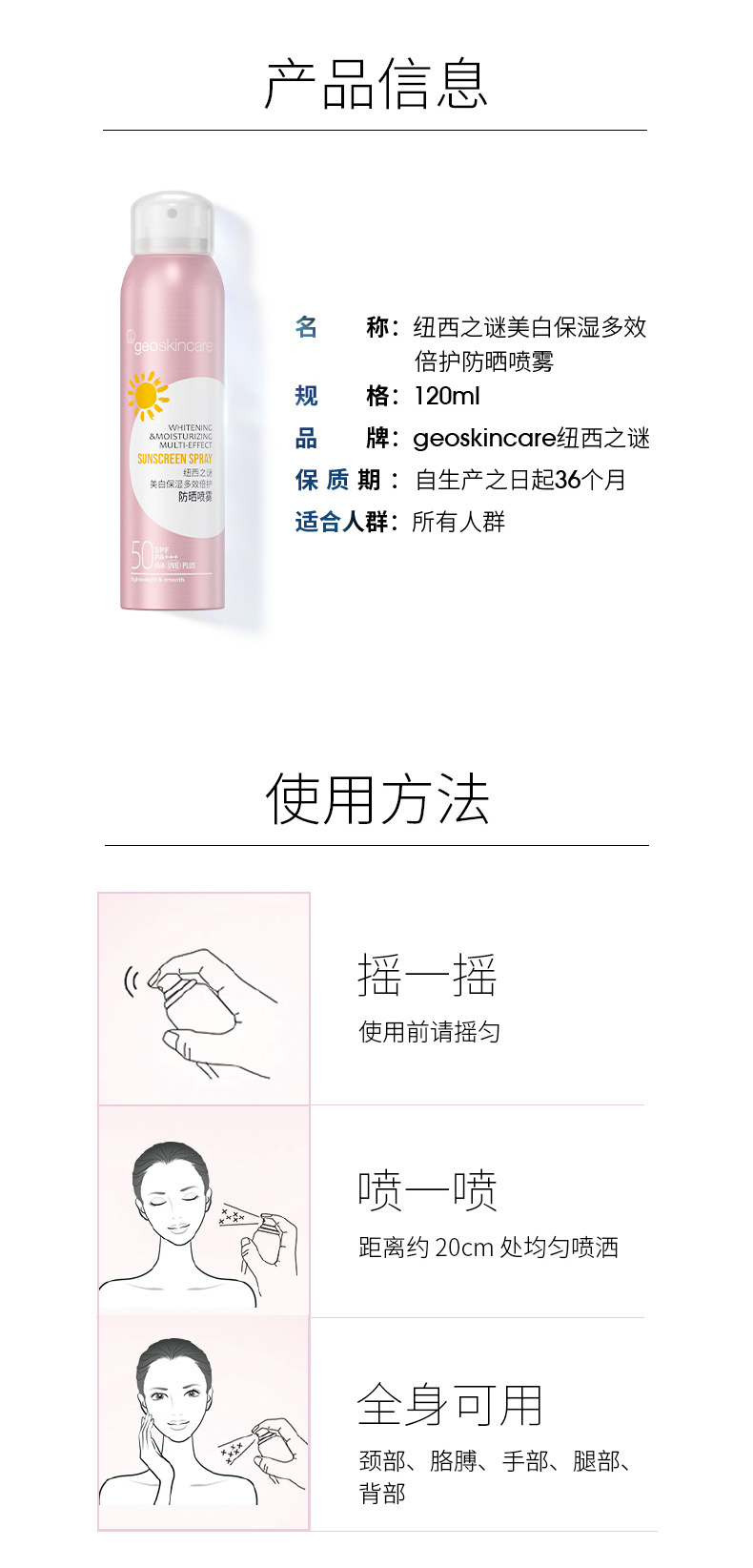 纽西之谜美白保湿多效倍护防晒喷雾SPAF50PA++120ml