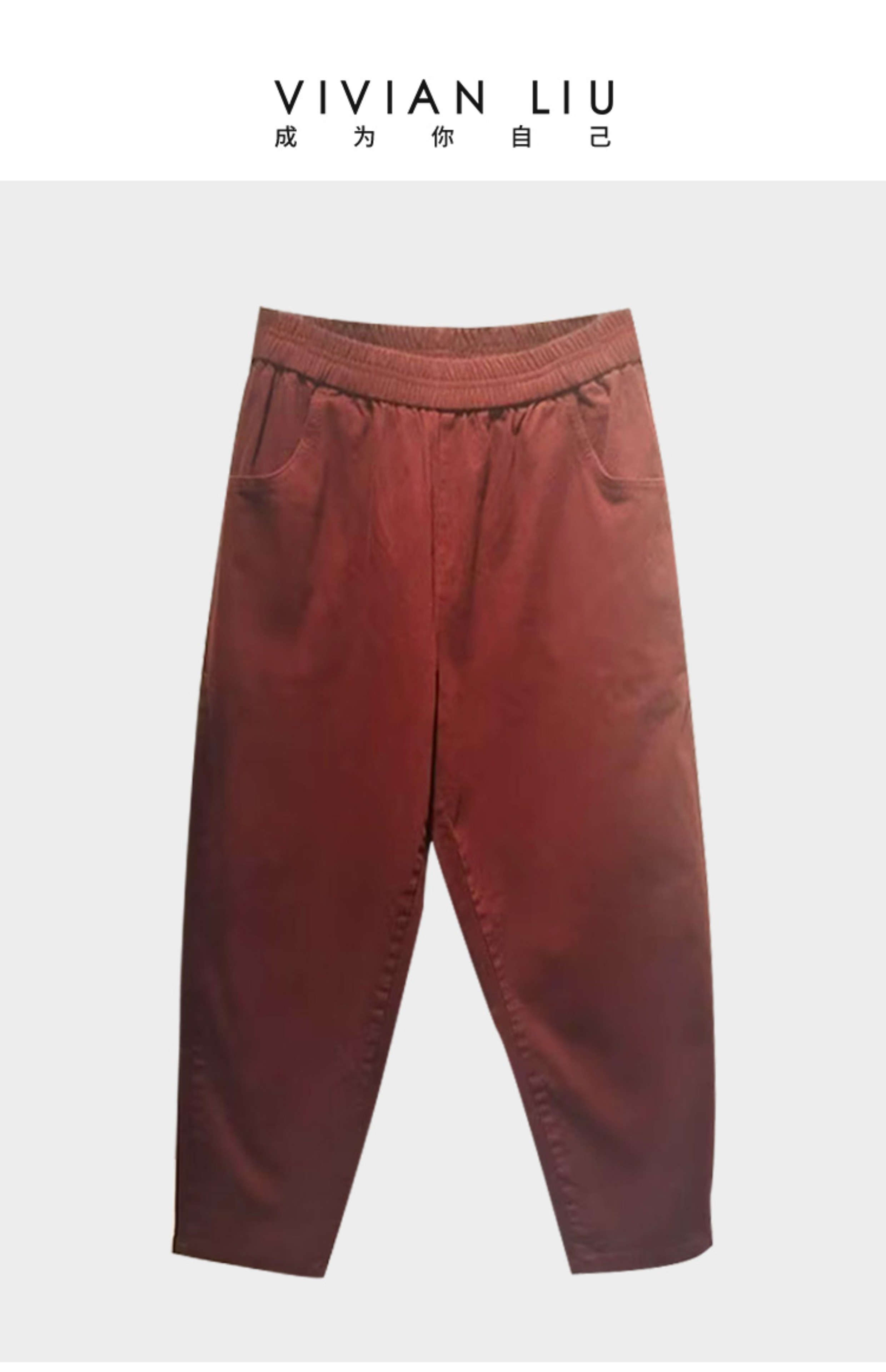 VIVIAN LIU TD2445019秋女装新款斜插兜显瘦松紧休闲长裤