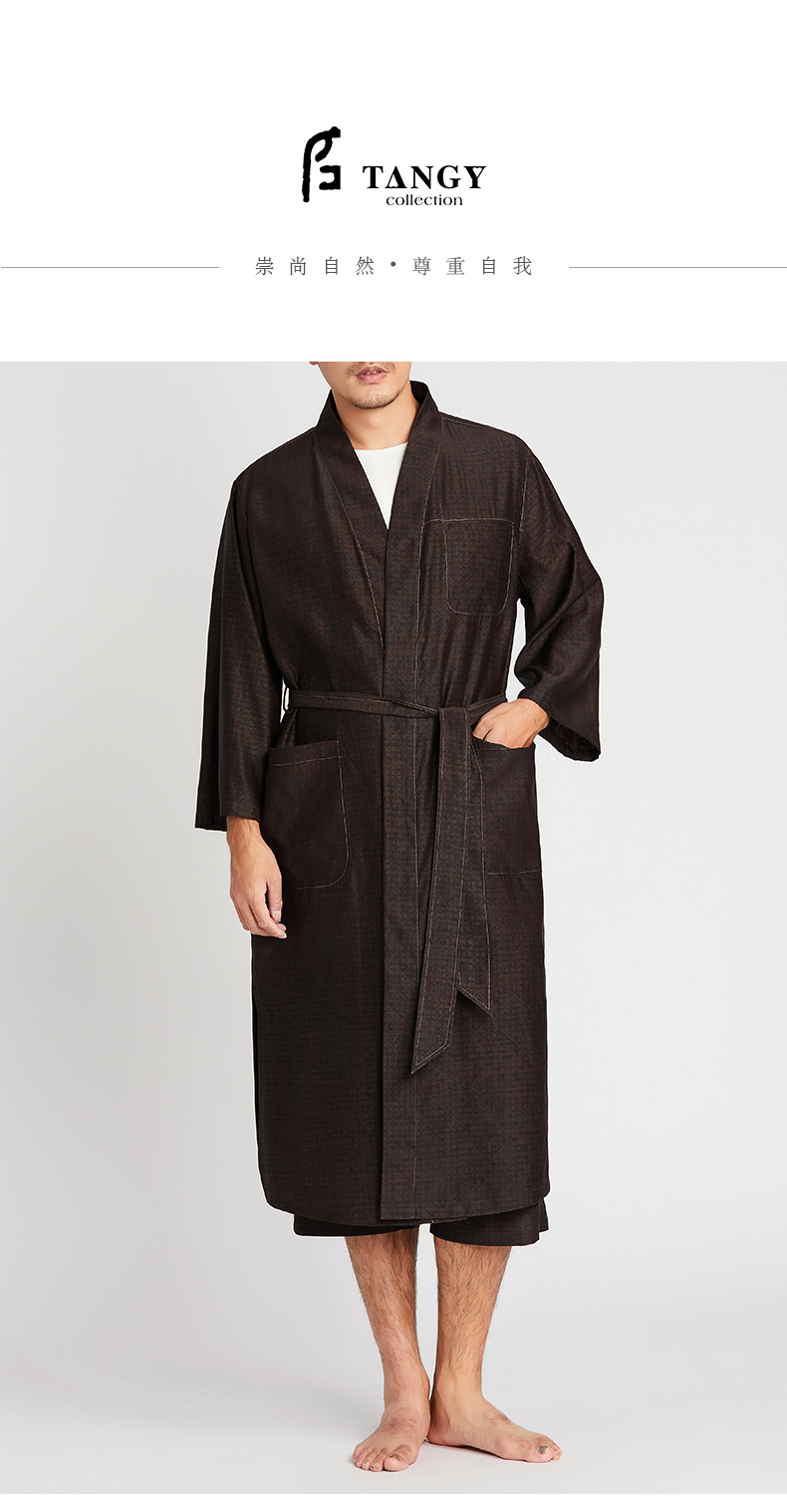 TANGY Collection/天意精品2021年春夏新品宽松型素绉缎莨男士睡袍