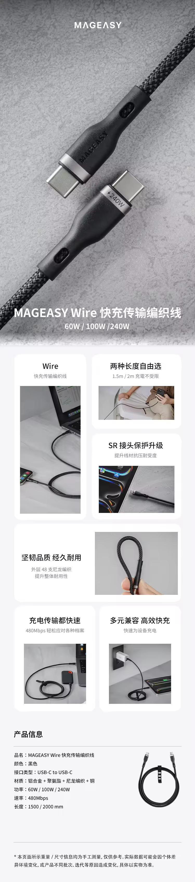 MAGEASY 快充 USB-C 100W 1.5米 充电线