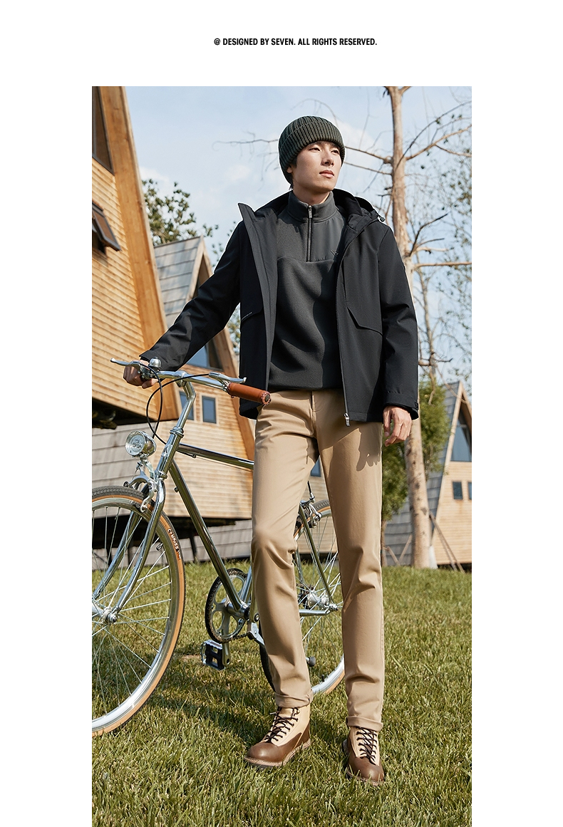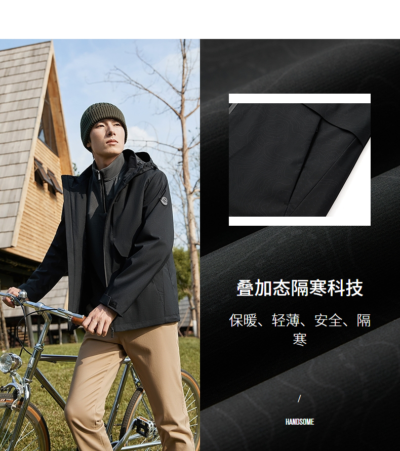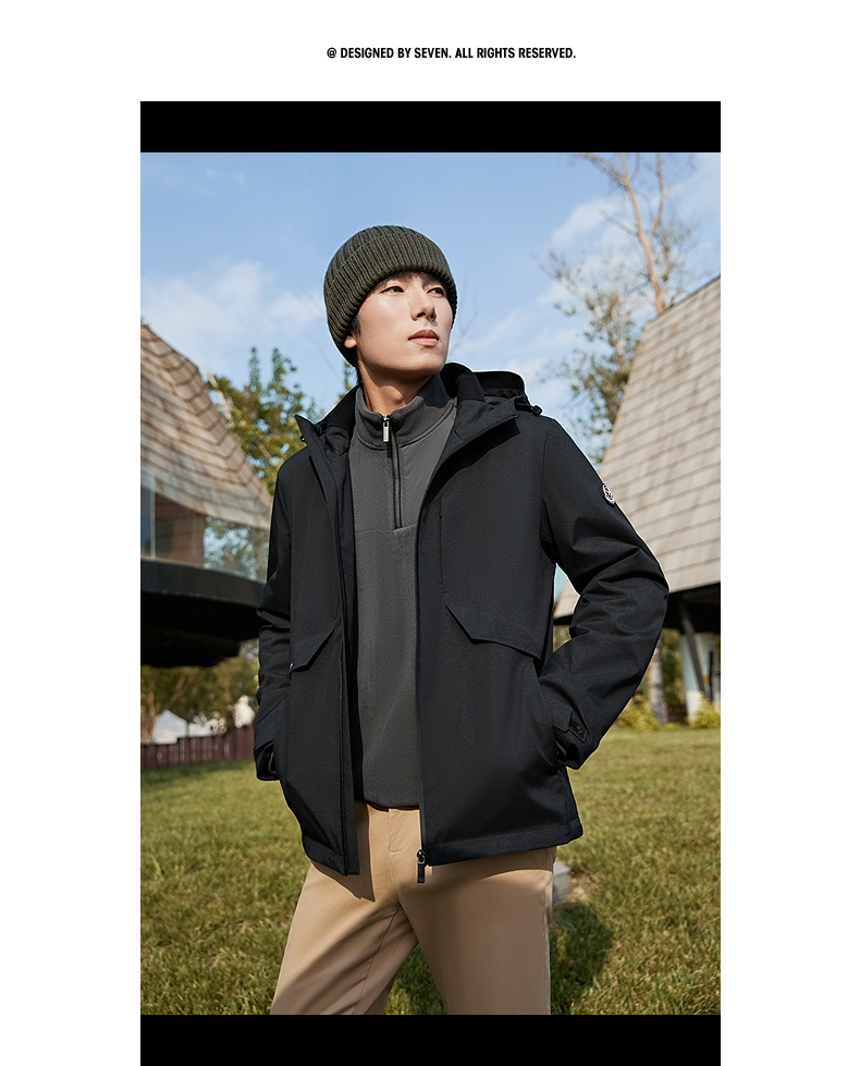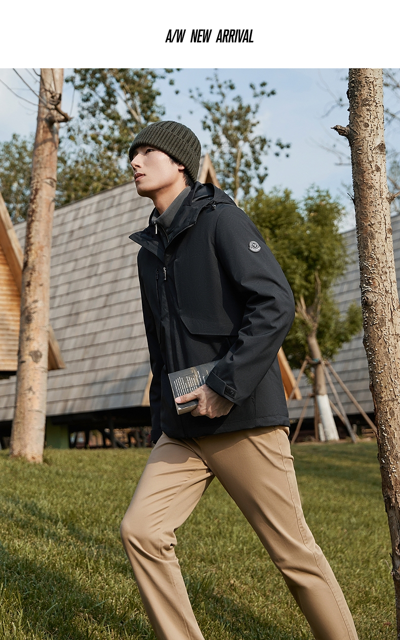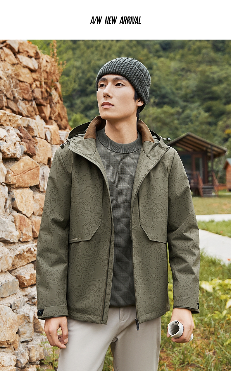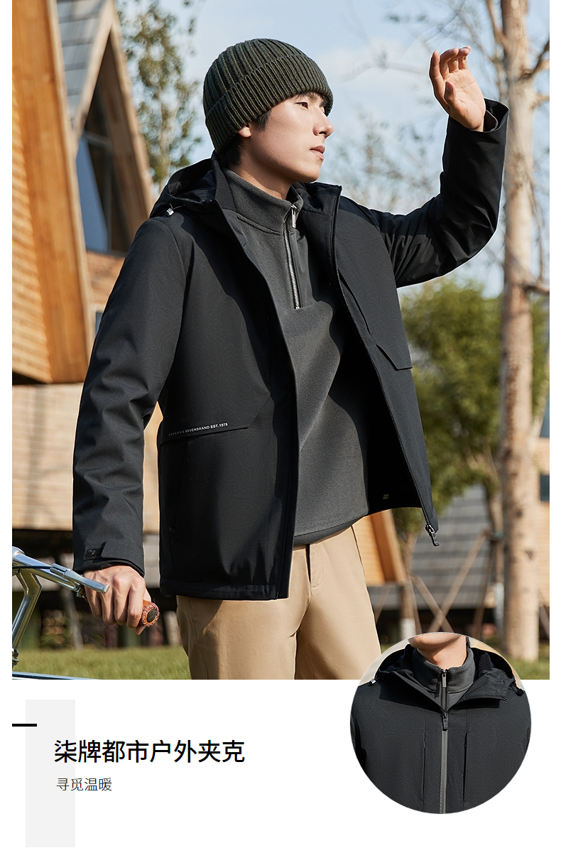 【石墨烯蓄热内里】柒牌连帽夹克男秋冬新款潮流满印户外休闲外套 127K70900