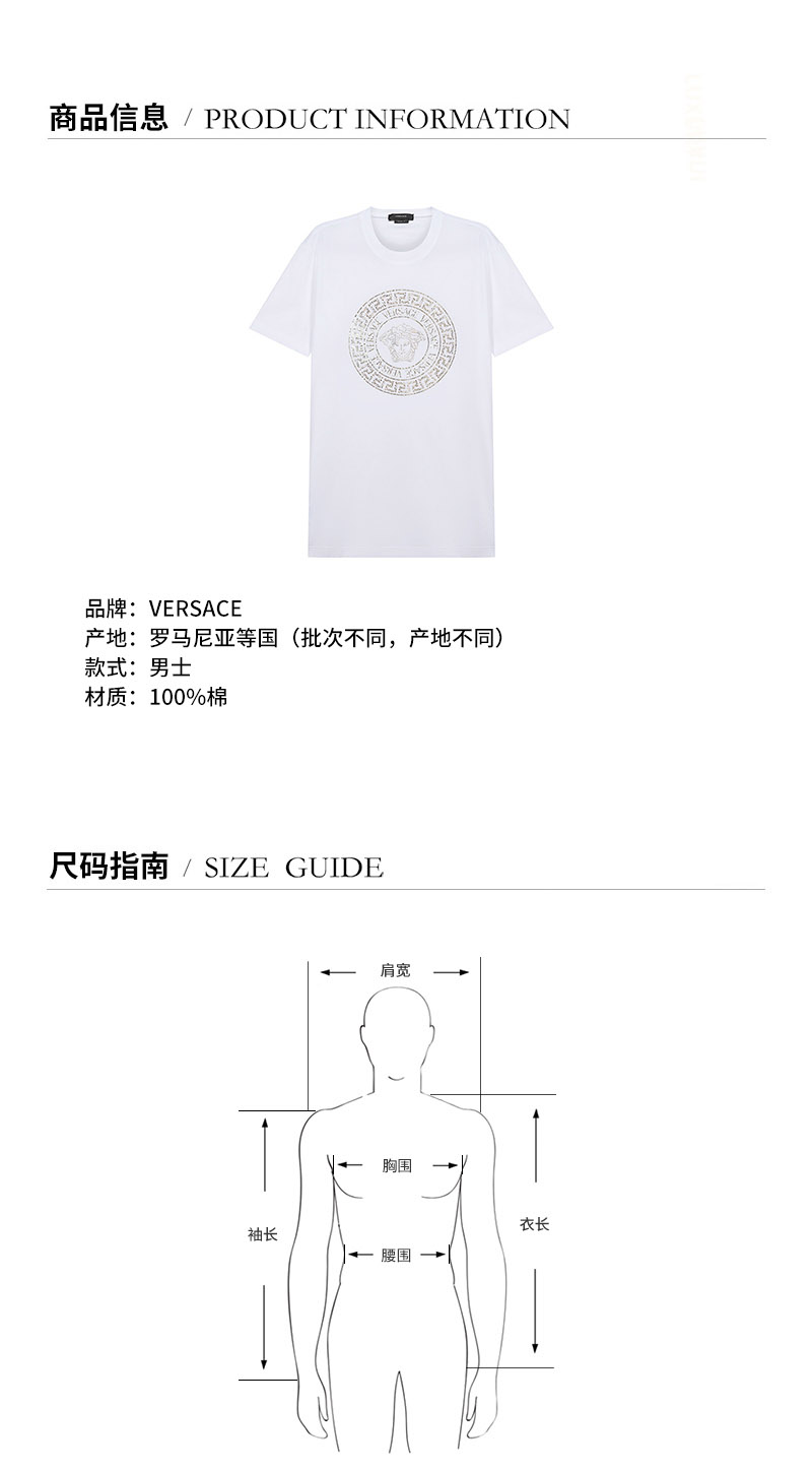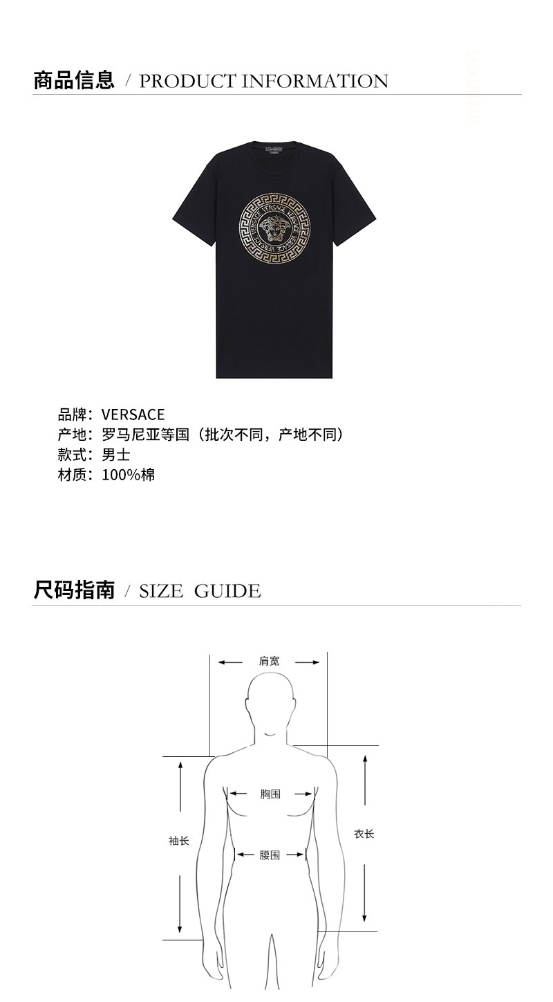 VERSACE/范思哲 2021款 男士短袖T恤 男士棉质圆领短袖T恤 1001619 1A01263
