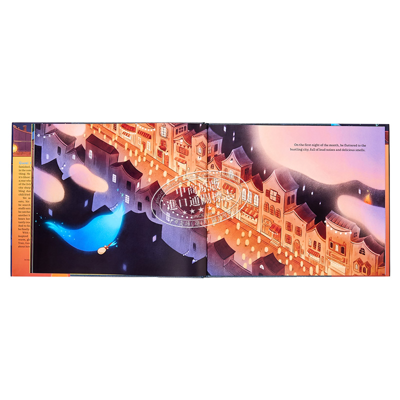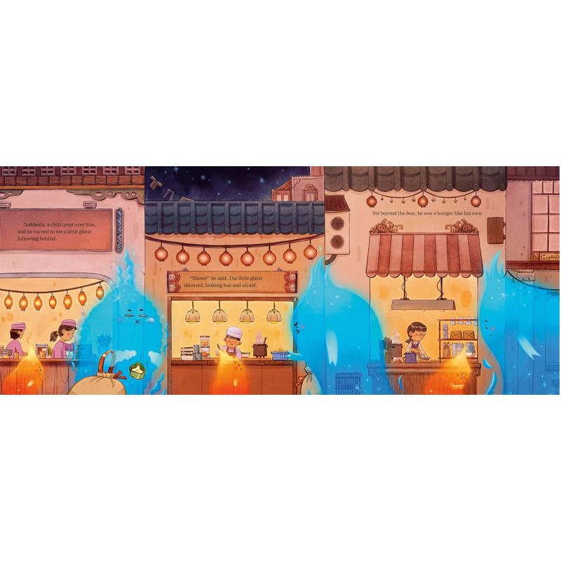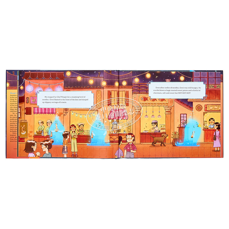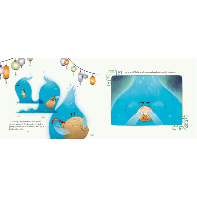 这是一本关于孤独鬼魂格威的绘本,讲述了他学会分享,最终在友谊中获得满足的故事。格威饿极了,但与其他鬼魂不同,他可不是什么都吃。幸运的是,现在正值中元节,一年中只有这个时候,鬼魂们才会游荡到人间。格威在城里飞来飞去,吃着热气腾腾的面条、滚烫的栗子和香脆的辣椒油炸鱼。然而,无论格威吃多少,他的饥饿感始终挥之不去。当他寻找wan美的食物时,他发现有人在跟踪他。原来是另一个饥饿的小鬼魂!当他听到小鬼咕咕叫的肚子时,他不情愿地从自己的口袋里拿出食物与她分享。令他惊讶的是,他终于开始感到饱了。本书由艾米琳·李(Emeline Lee)撰写,文字充满中国民间传说的魅力,并由芭西亚·特兰(Basia Tran)绘制了温暖明亮的插图。《饿鬼格威》讲述了一个关于友谊如何滋养灵魂的故事。本书附有图文并茂的附录,详细介绍了真正的盂兰盆节和中国神话中的更多神灵!