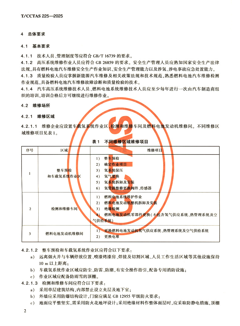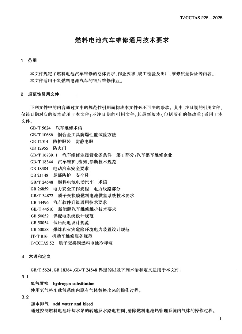燃料电池汽车维修通用技术要求T/CCTAS 225—2025