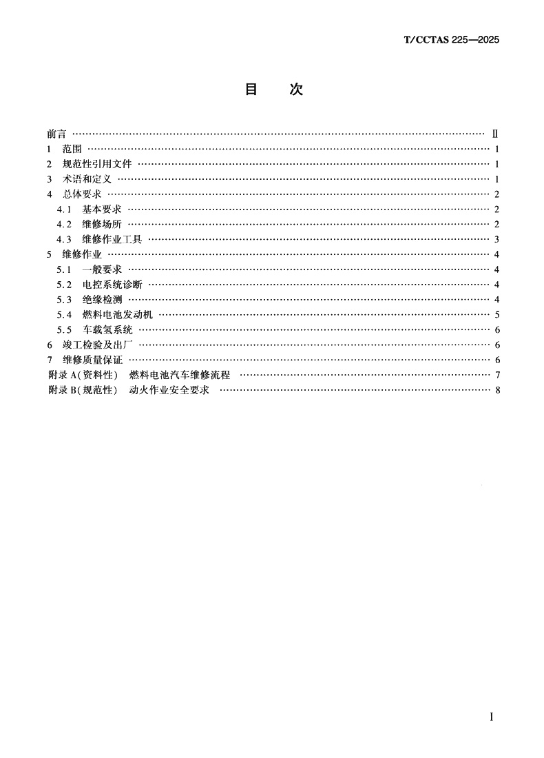 书名:燃料电池汽车维修通用技术要求T/CCTAS 225—2025