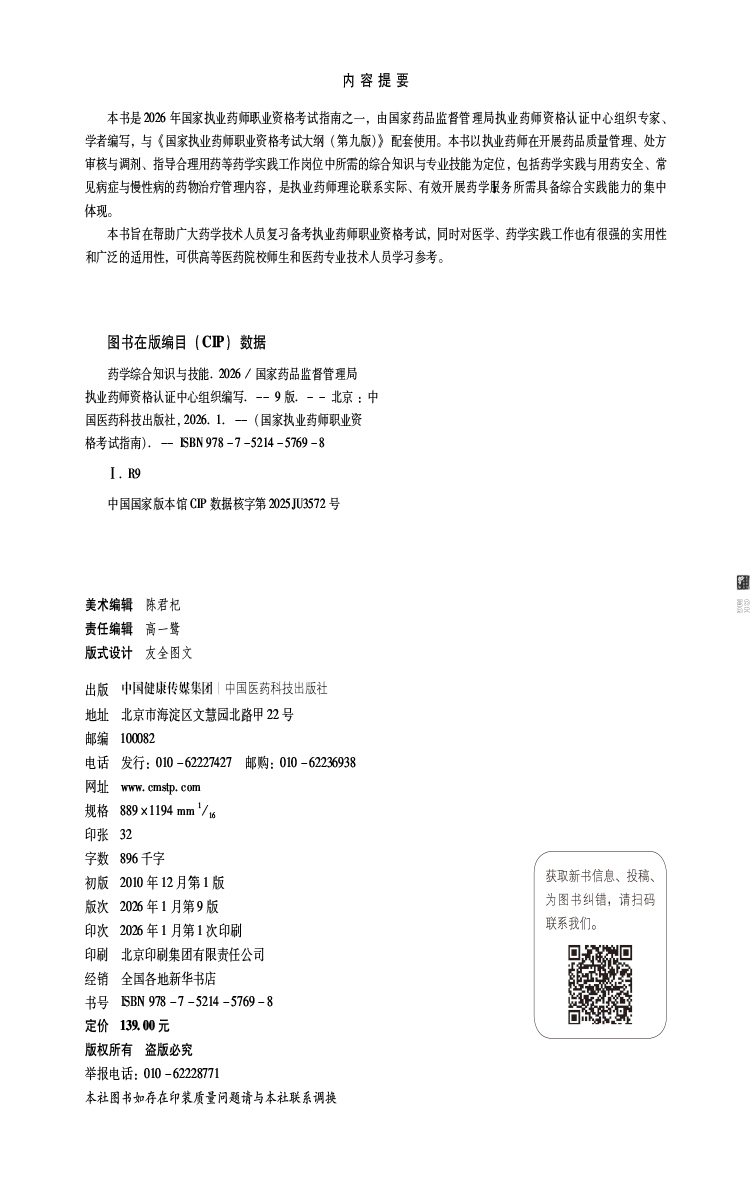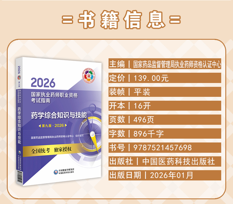 2026药学综合知识与技能(第九版·2026)(国家执业药师职业资格考试指南)可供高等医药院校师生等人员学习 中国医药科技出版社