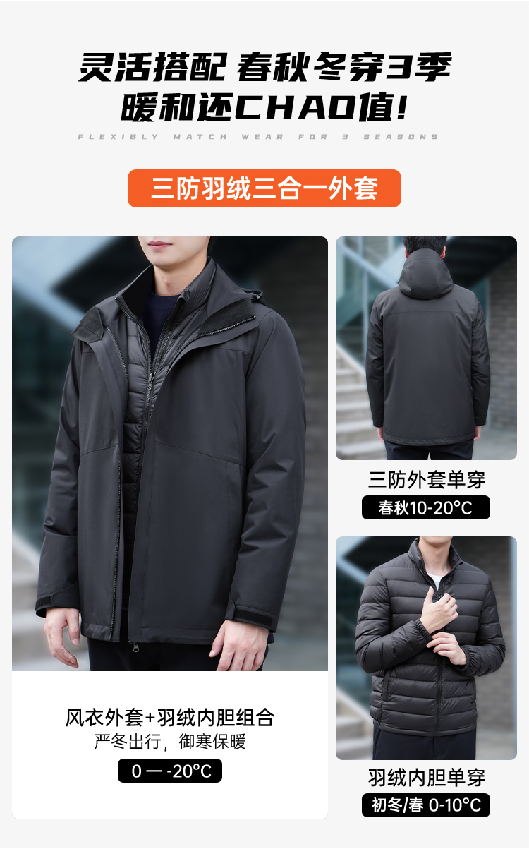 【实付满399送保温杯】【剑锋三合一风衣外套】可拆卸内胆风衣外套 加厚保暖羽绒服棉服