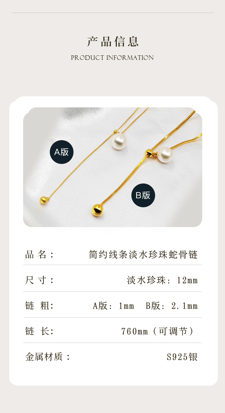 ysyf-08021【云赏珠宝】12mm简约大气天然淡水珍珠可调节长短项链s925银项链(一年免费保修,不含配件更换/镀金)
