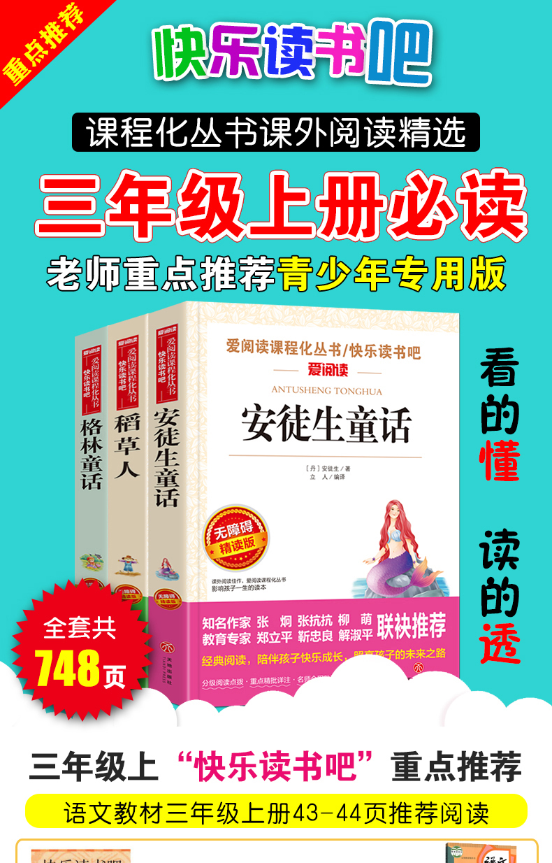 全套3册 稻草人书叶圣陶三年级上册课外书必读的正版书目格林童话安徒生童话故事全集快乐读书吧推荐阅读书籍