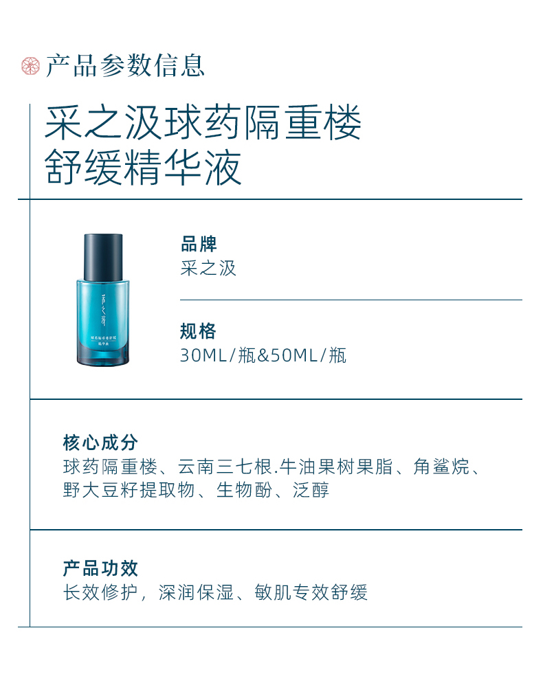 【官方正品】云南白药采之汲球药隔重楼精华液50ml保湿补水修护敏感舒缓红区