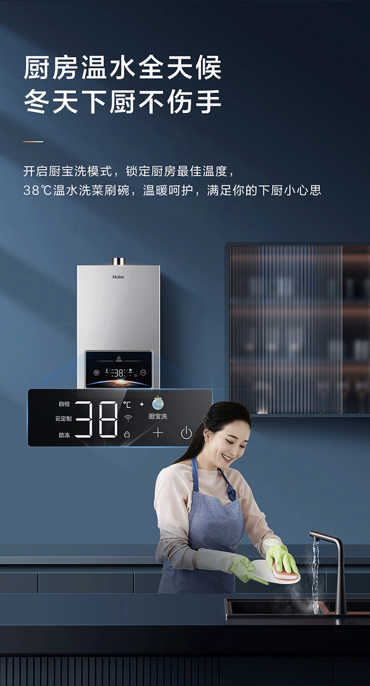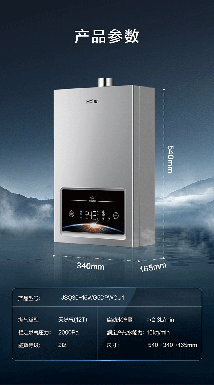 海尔(Haier)16升燃气热水器天然气水伺服恒温节能家用大水量 JSQ30-16WG5DPWCU1