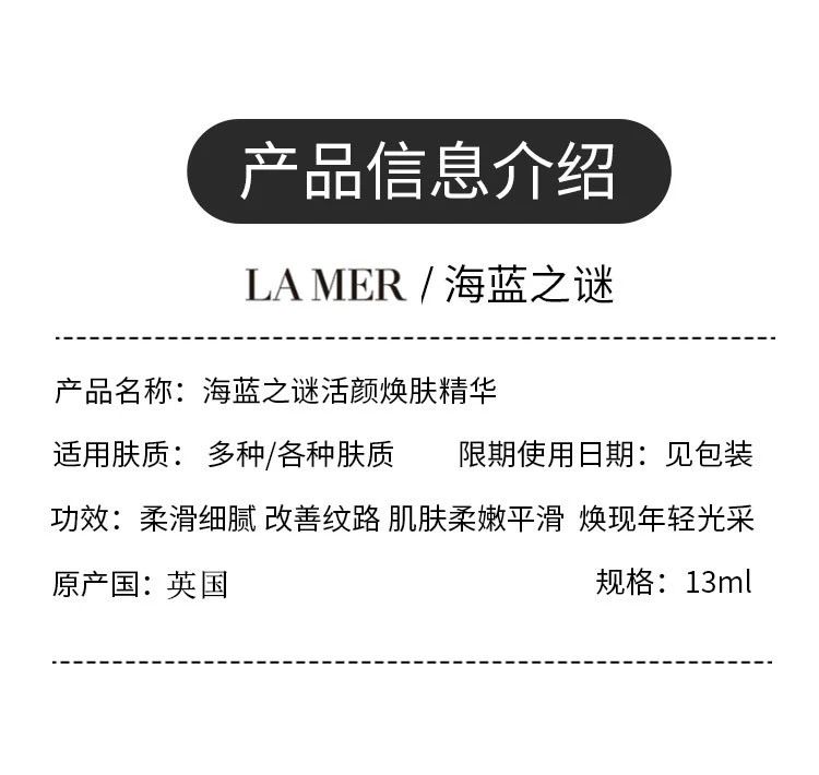 【19楼专属 全球购】海蓝之谜活颜焕活精华 13ml*2 有效期至2027.5.10(临期特惠买一送一)