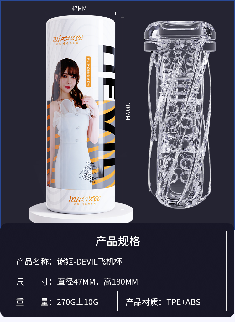 谜姬(Mizz zee) Devil手动飞机杯 透明软胶名器 飞机杯 手动夹吸 男性自慰器成人性用品