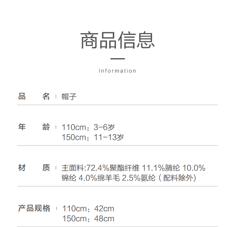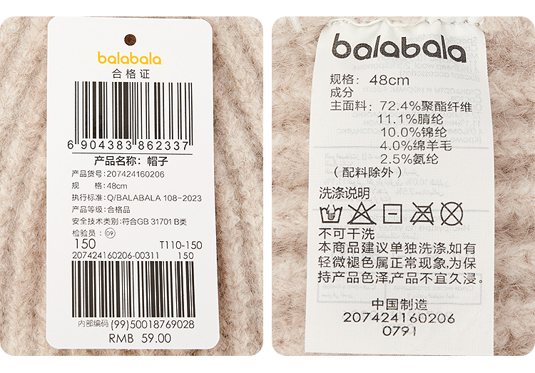 巴拉巴拉儿童帽子男女童比尼帽柔软舒适保暖冬季精致时尚简约外出