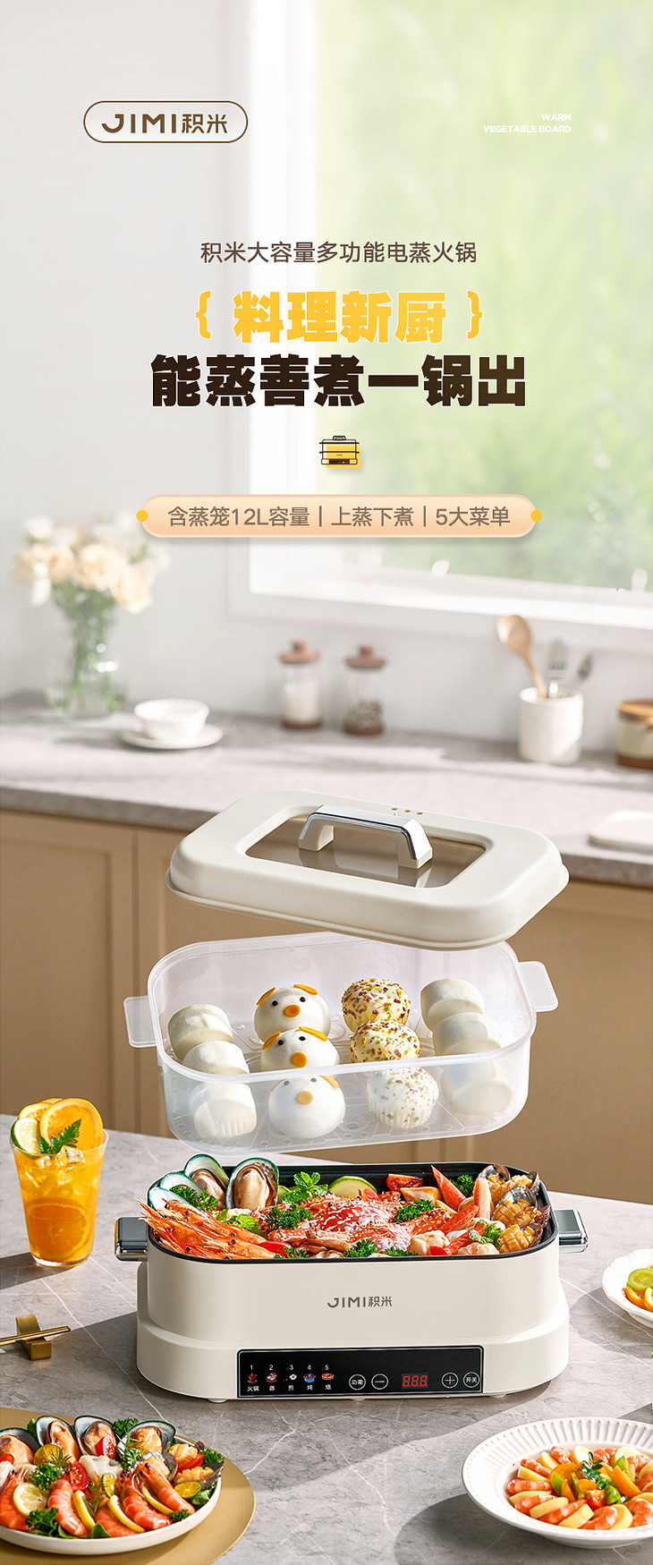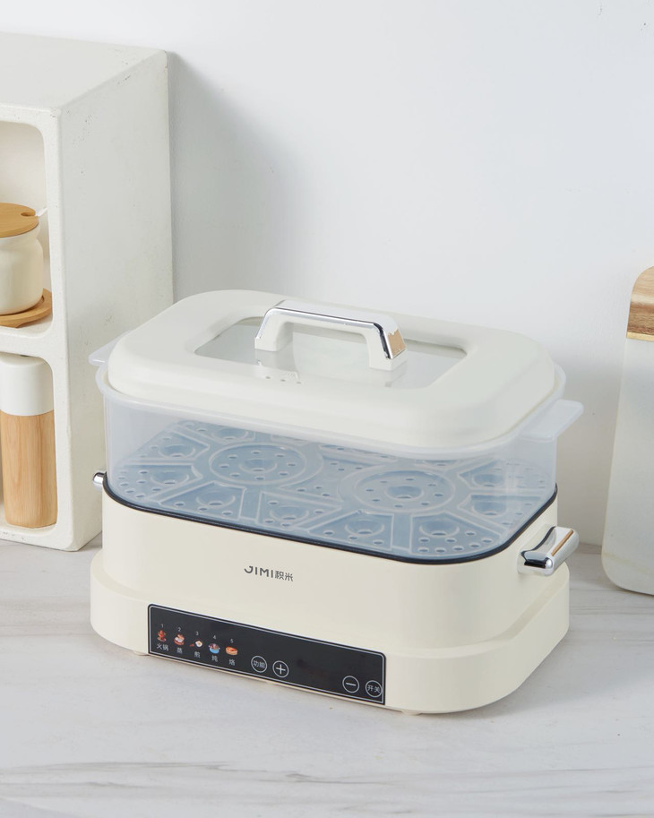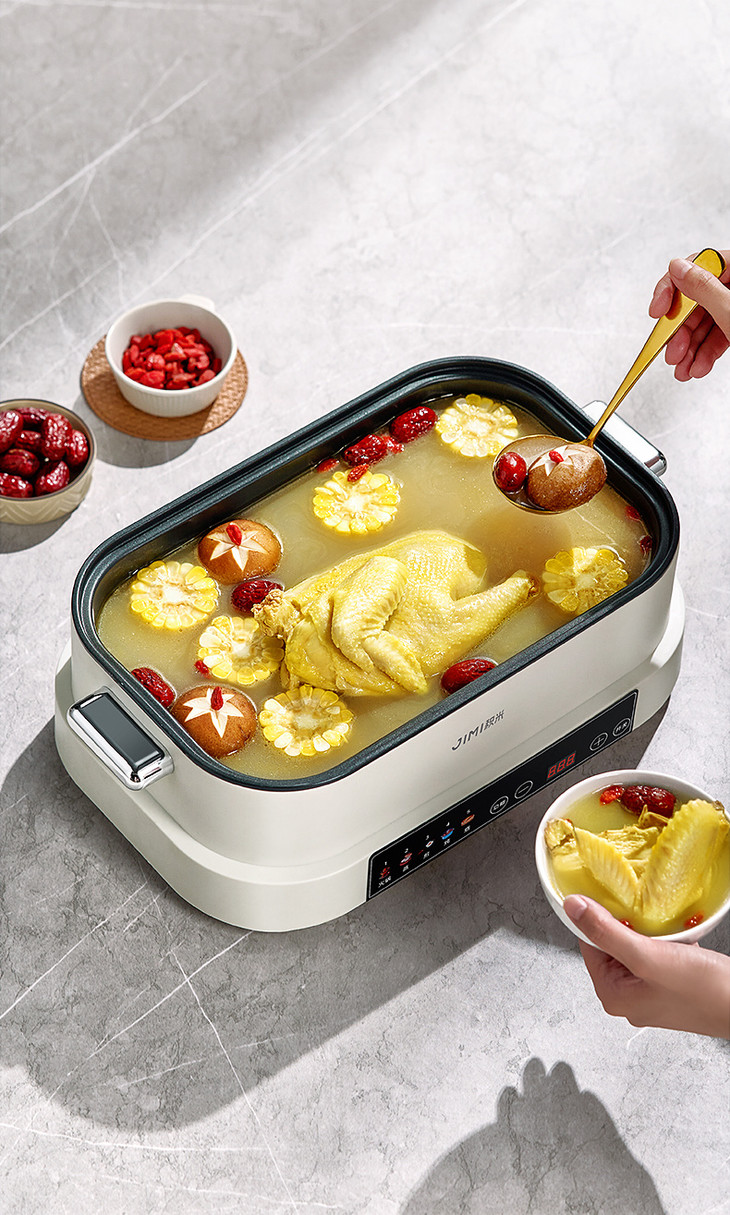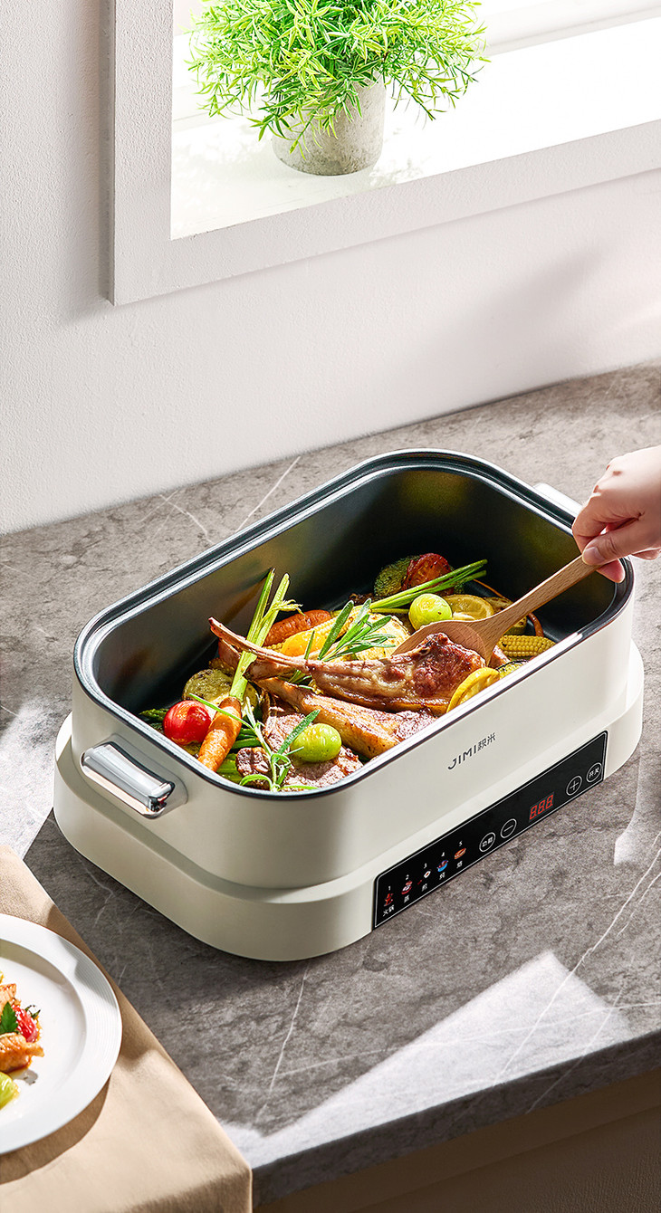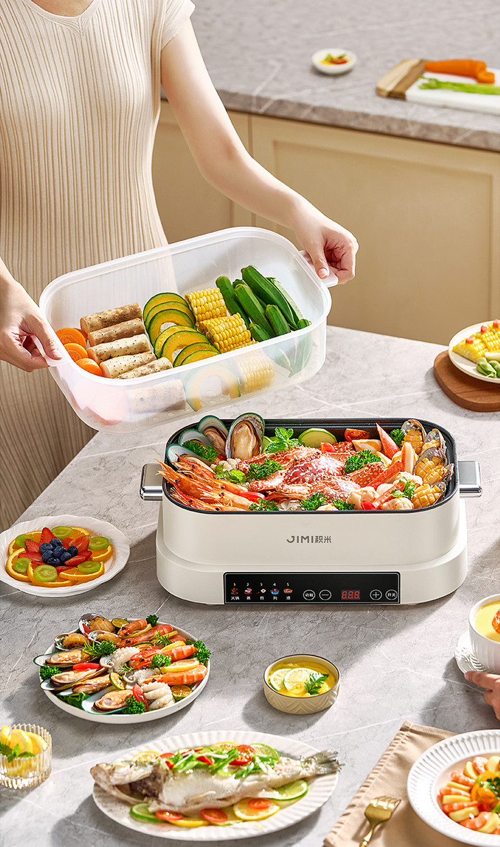 积米大容量多功能电蒸火锅家用蒸煮炒一体锅