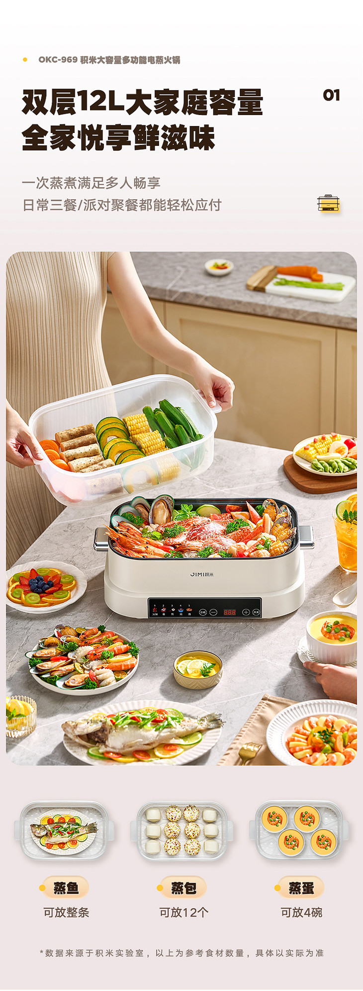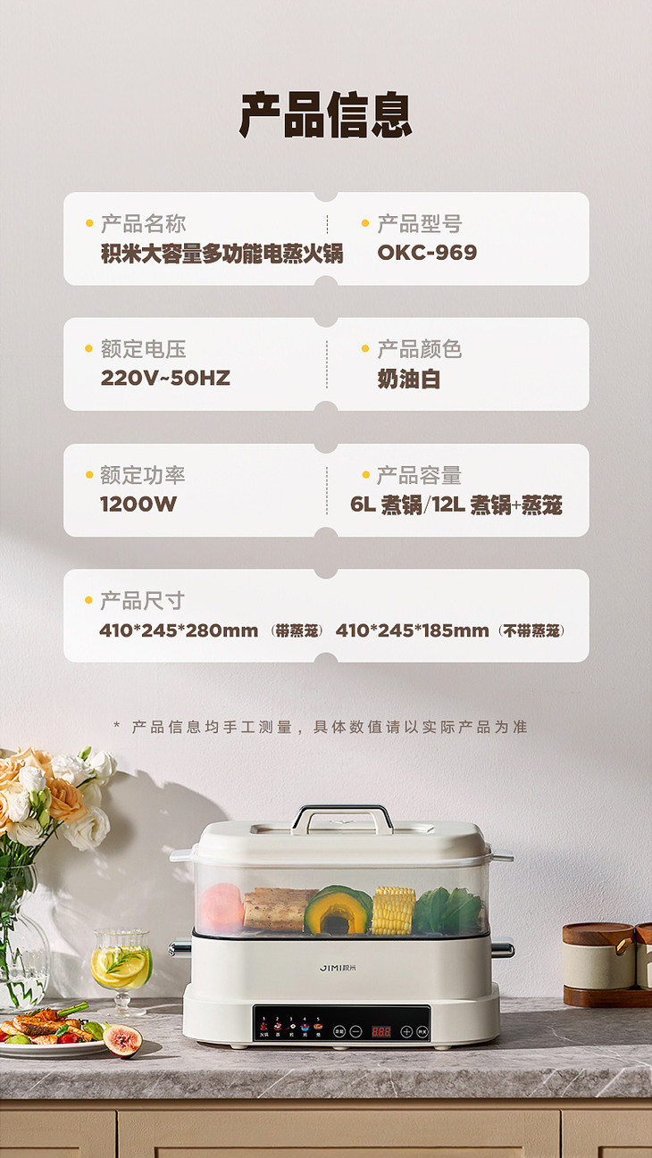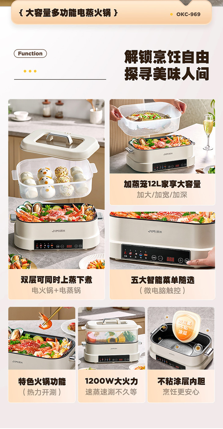 💥【积米6升大容量多功能火锅家用蒸煮炒一体锅OKC-969🌞】 一次蒸煮满足多人畅享🌸 日常三餐🔺 / 派对聚餐都能轻松应付 💥双层12L大家庭容量(6L煮锅 + 6L大蒸笼)