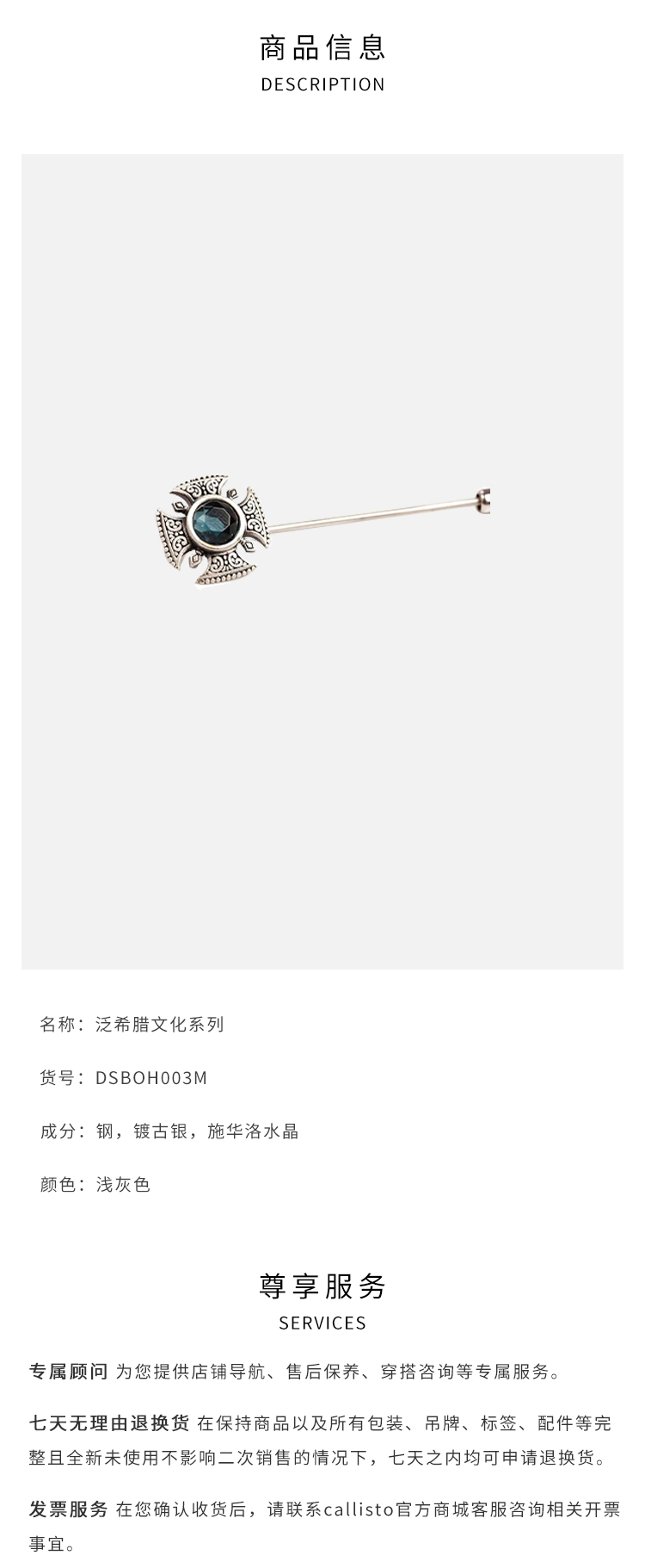 callisto银色泛希腊文化系列胸针 DSBOH003M