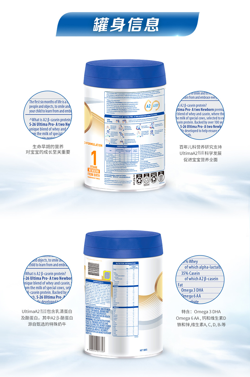 HNMG 新西兰 惠氏S-26 Pro-A2婴幼儿奶粉1段900g