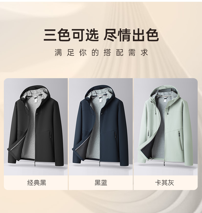 【防水&防静电&防紫外线】圣得西男士2024年秋季新款时尚连帽夹克