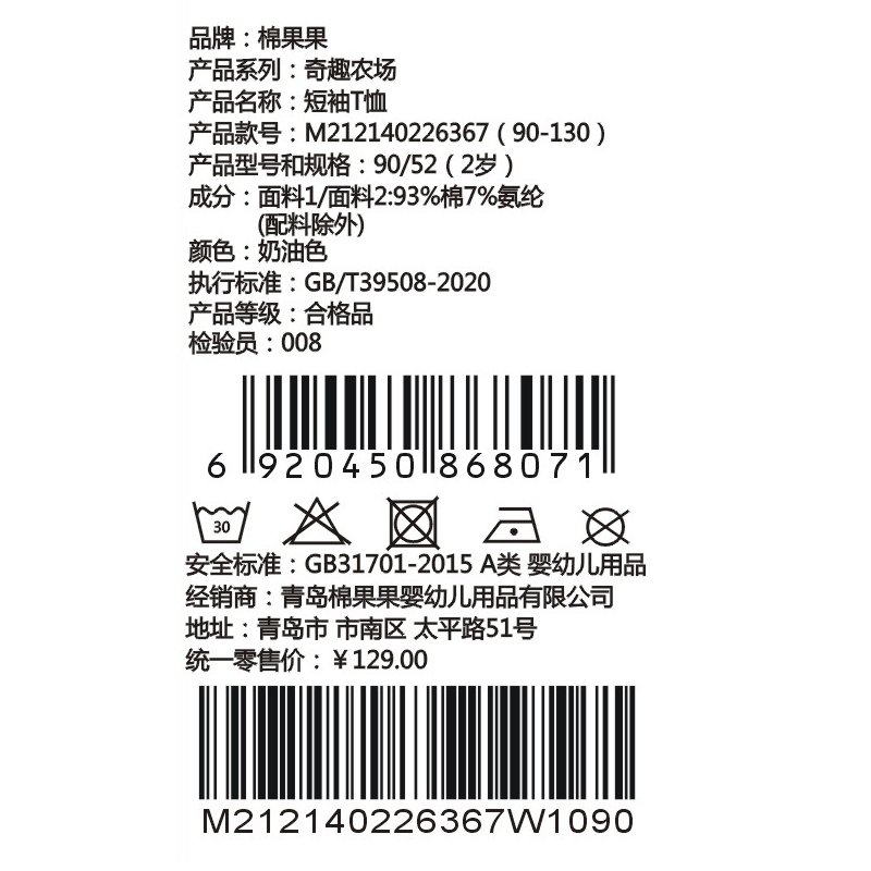 棉果果秋冬季男童纯棉套头T恤M412140218657