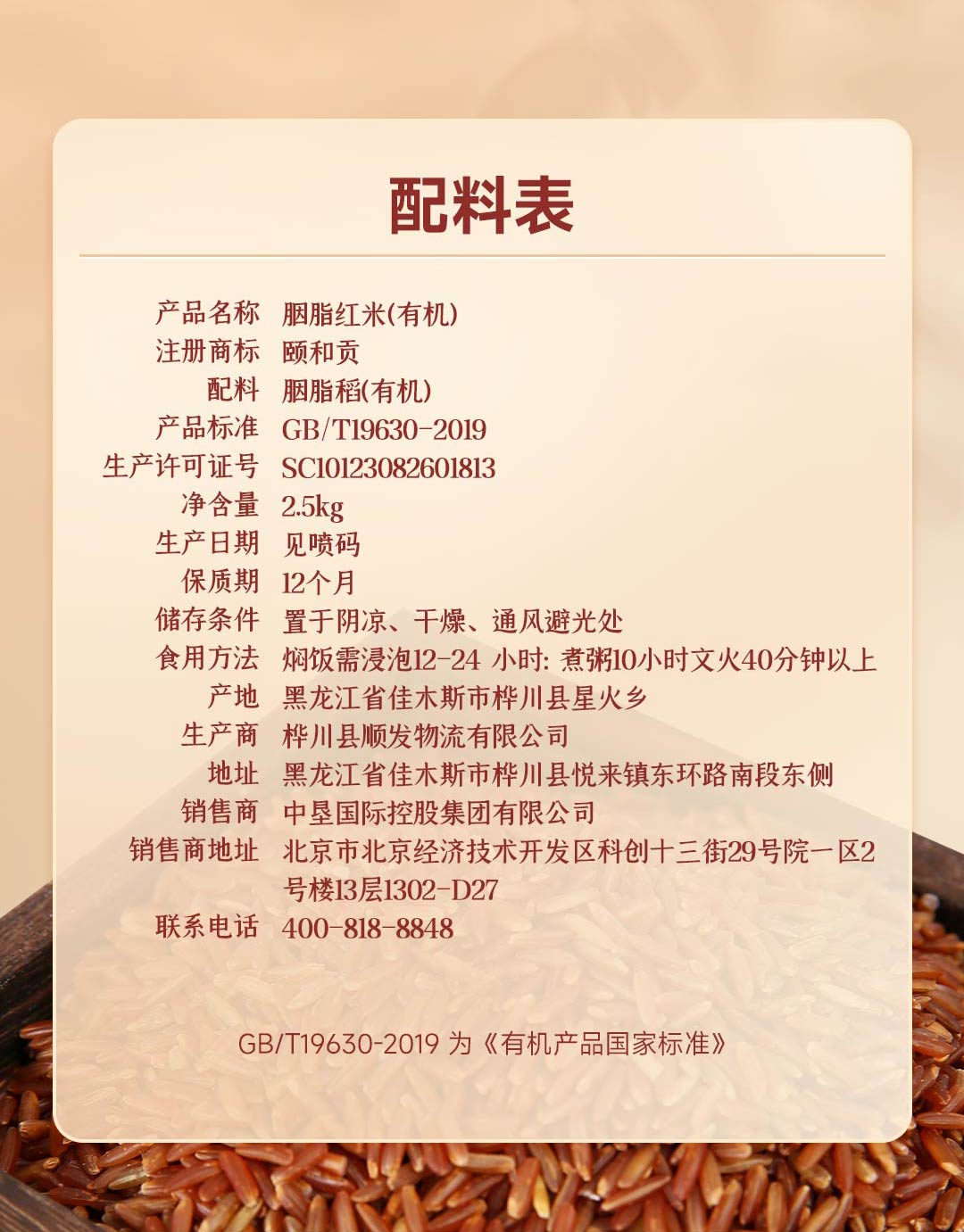 【中国农垦】 颐和贡 有机红米 2.5kg/袋