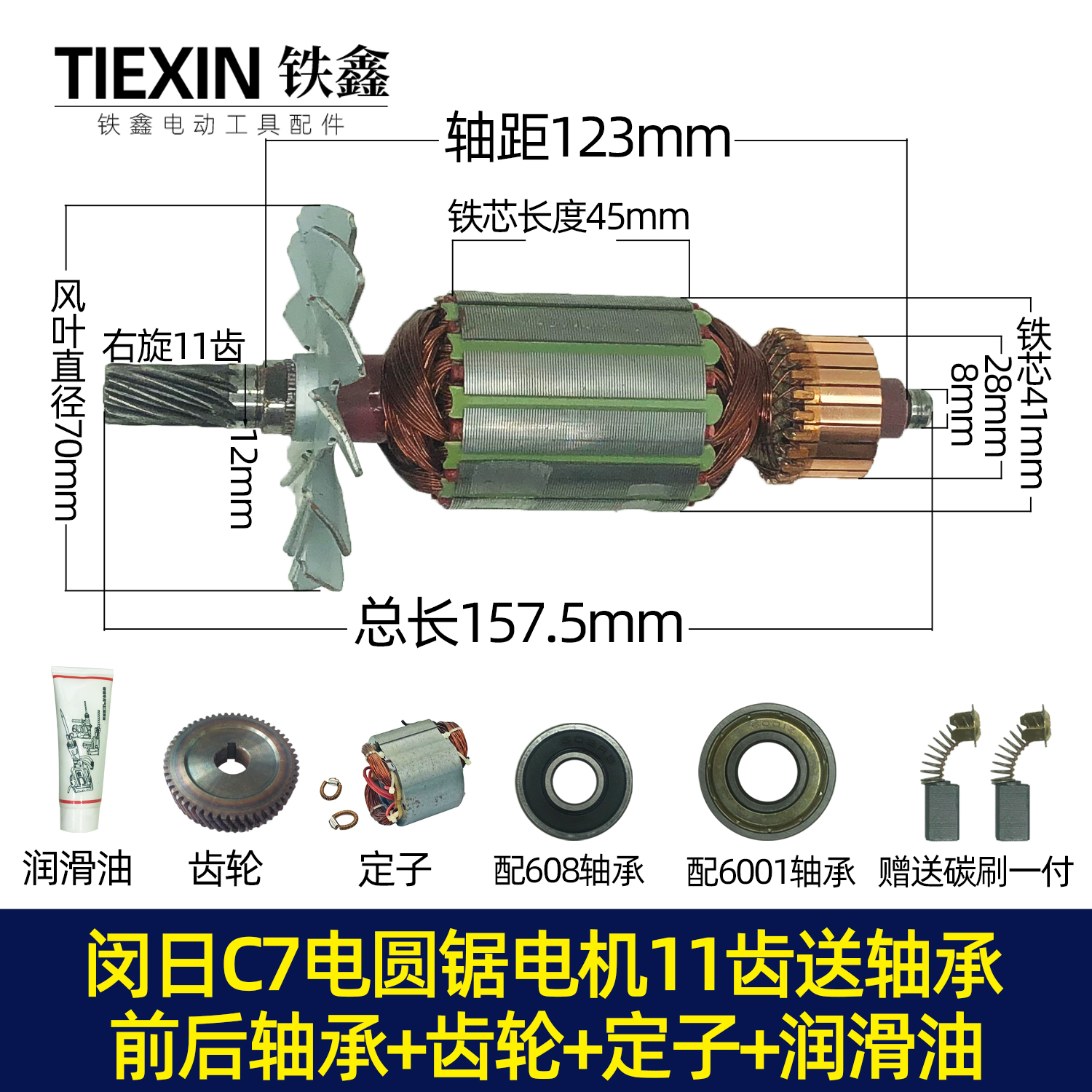 【货号02378】闵日7寸电圆锯转子11齿铁风叶日立7寸电圆锯电机