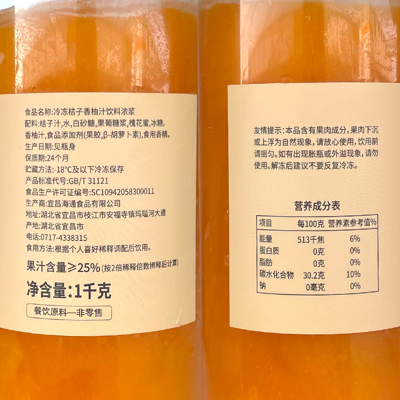 好C冠冷冻桔子香柚汁饮料浓浆1kg商用橘子汁桔子汁 爆汁大橘鲜果浓缩汁饮料 奶茶店专用原材料