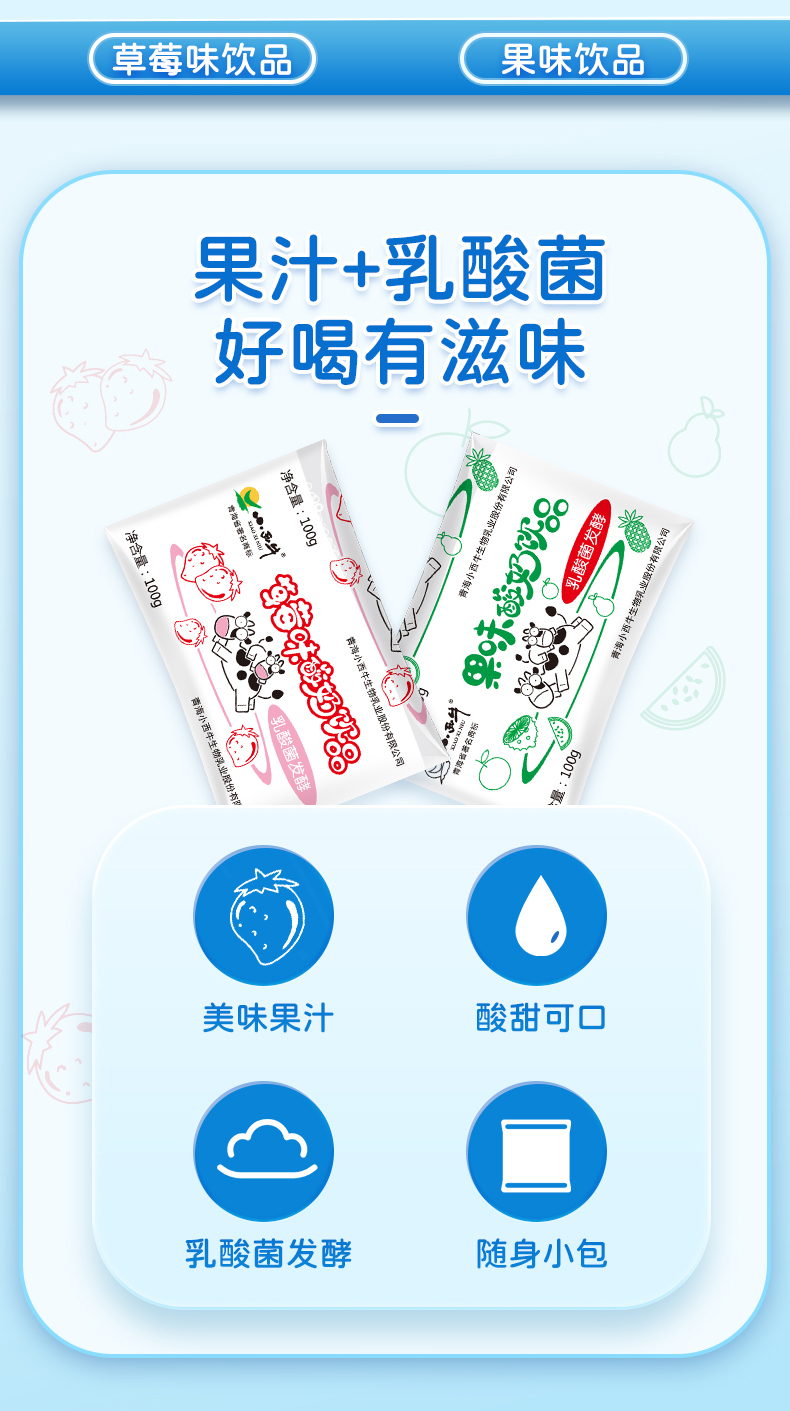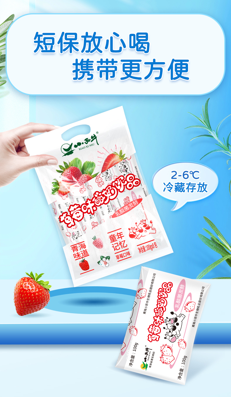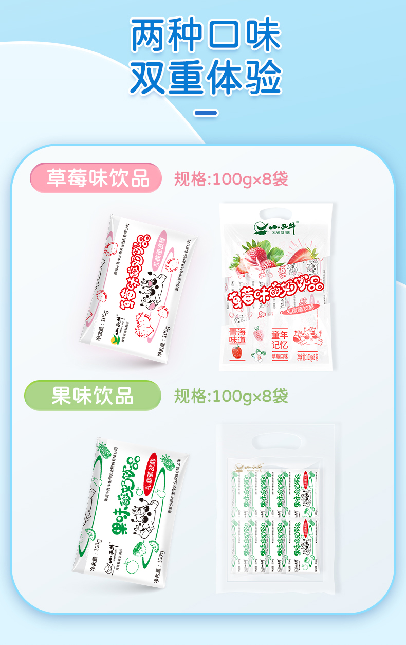 【光明&小西牛 】特色酸奶饮品乳酸菌饮料草莓/果味袋装酸牛奶 100克*8袋*2提