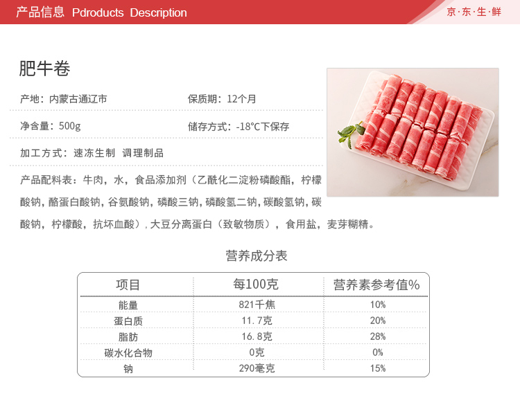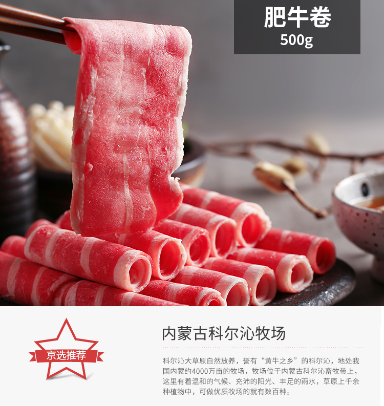 科尔沁 内蒙古肥牛肉卷/肉片 500g/袋 谷饲牛肉 火锅食材生鲜