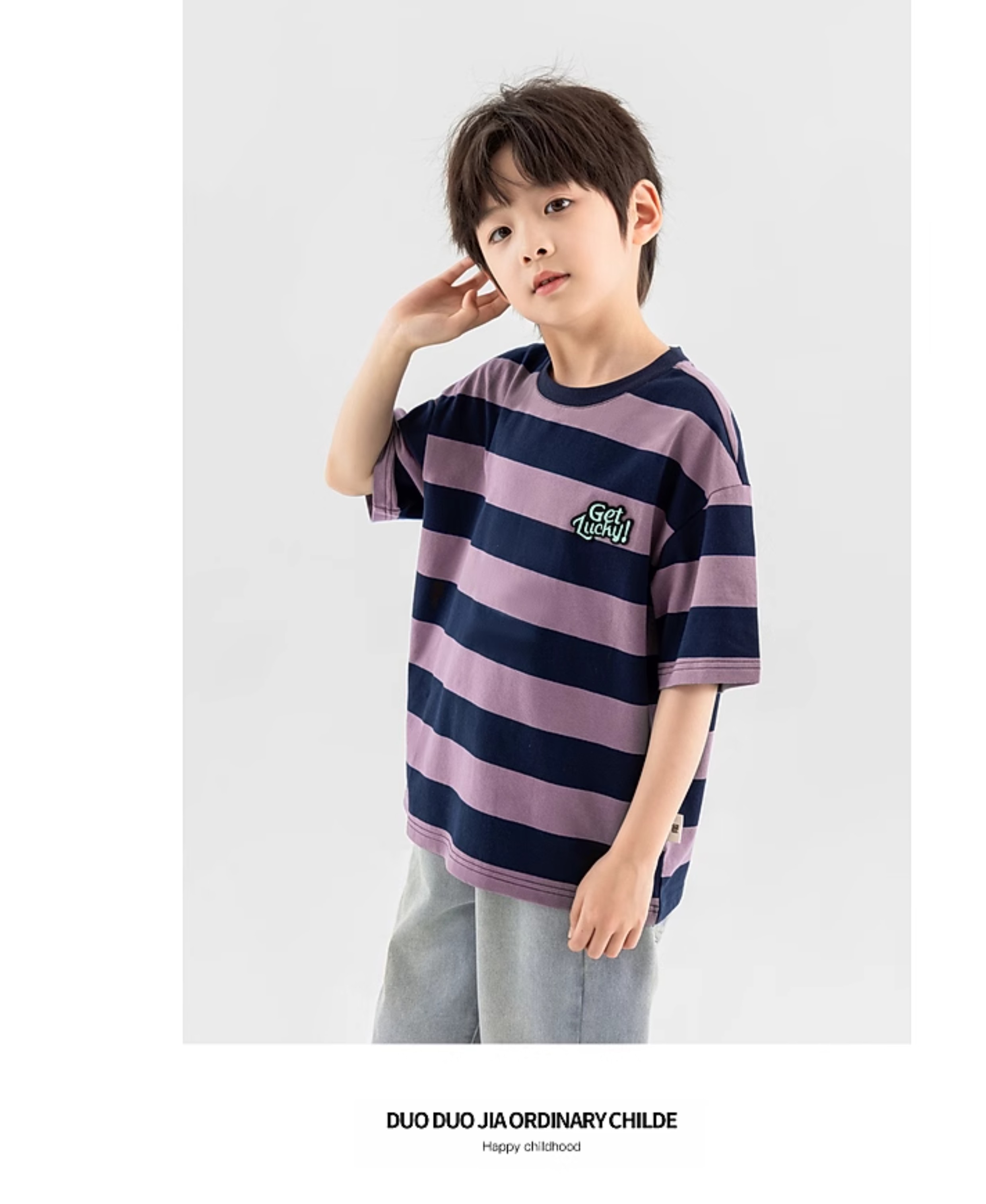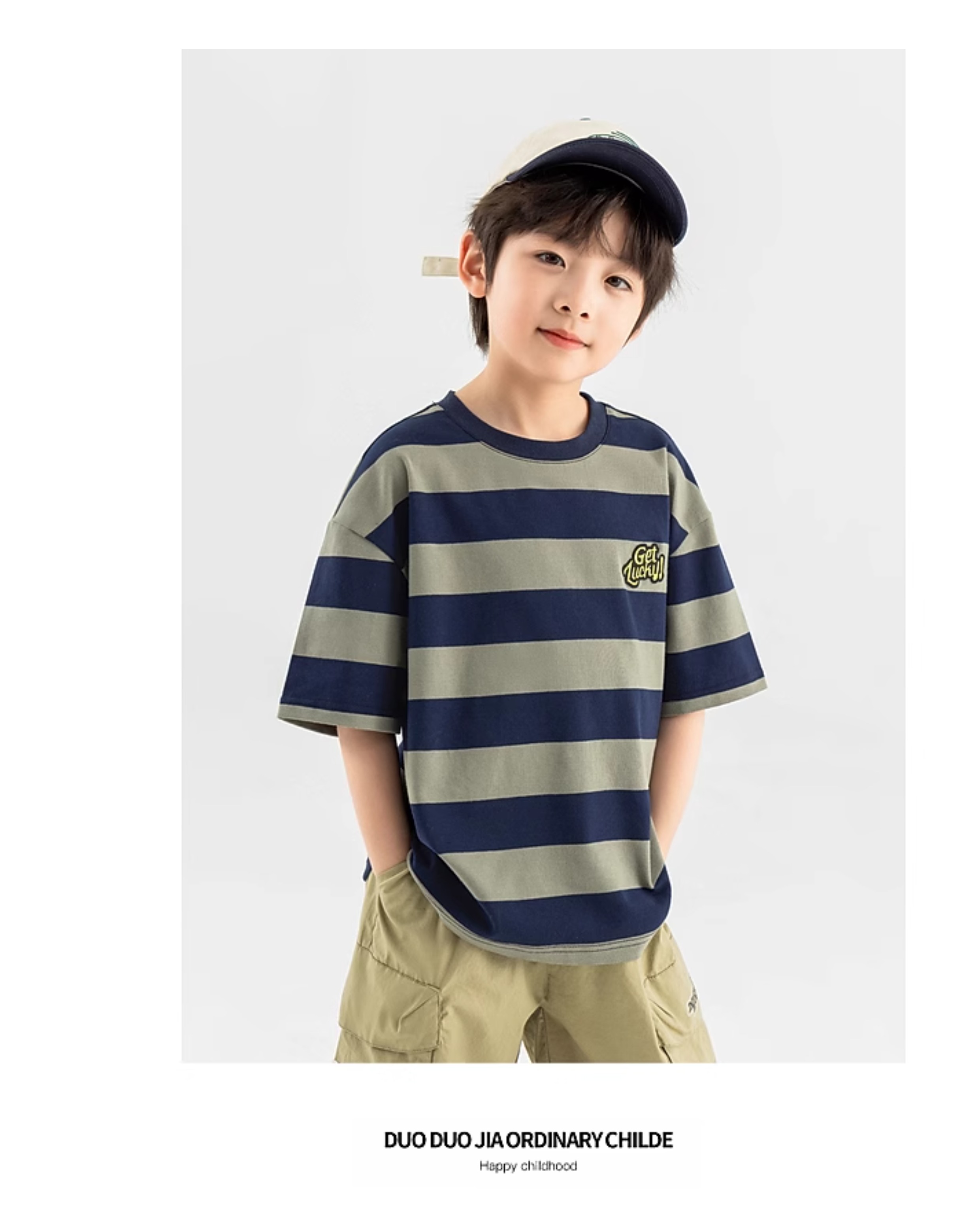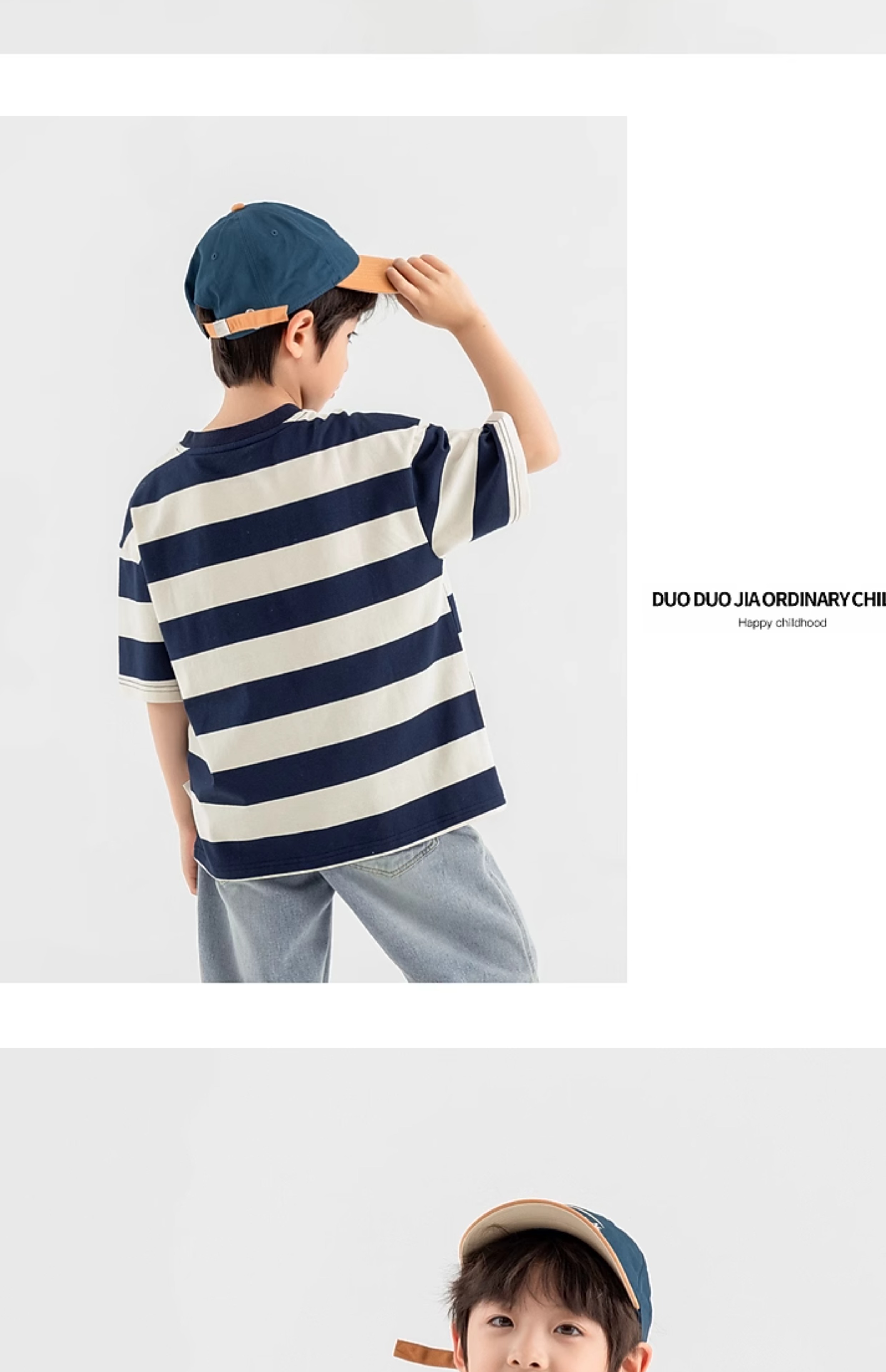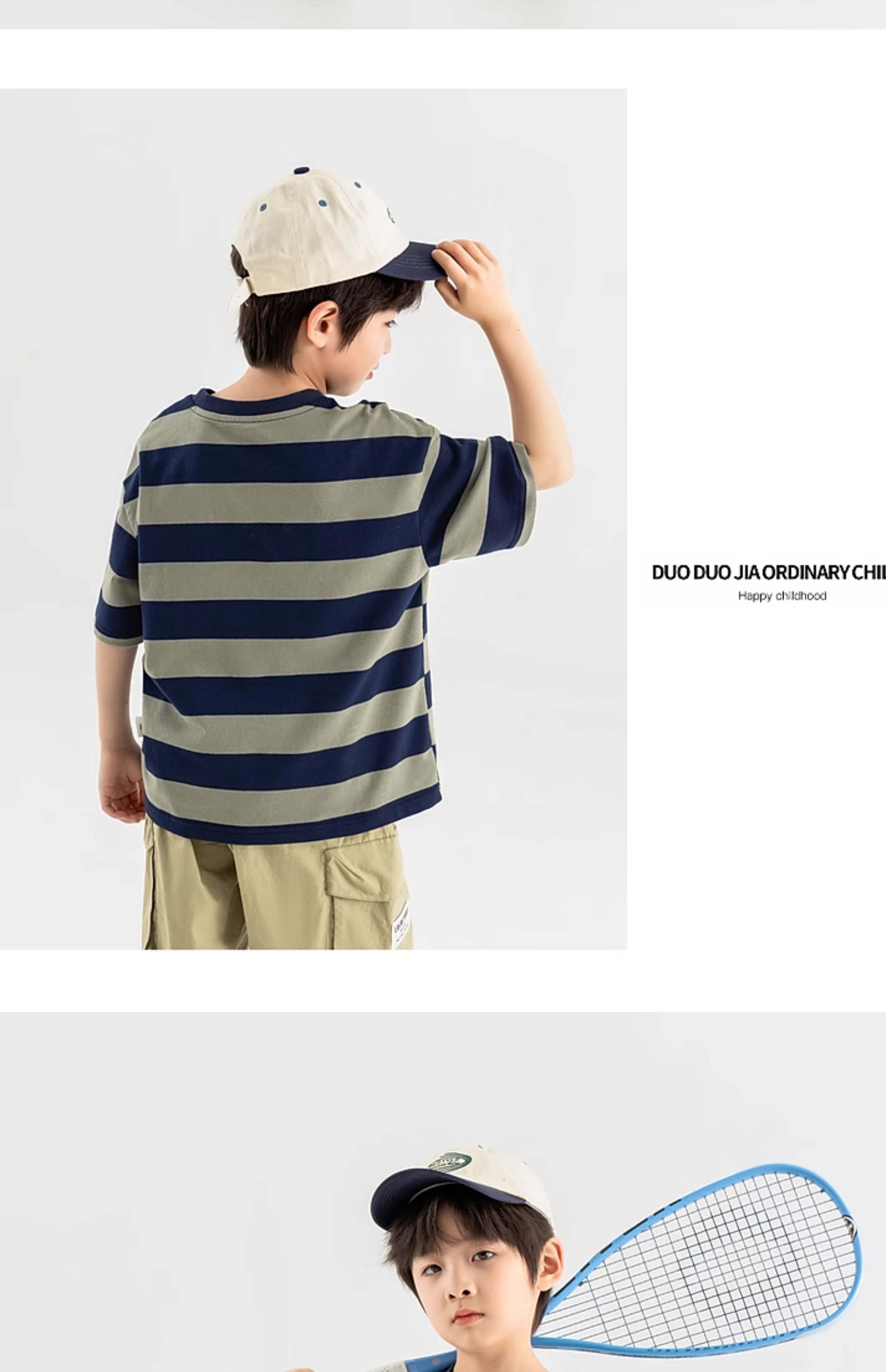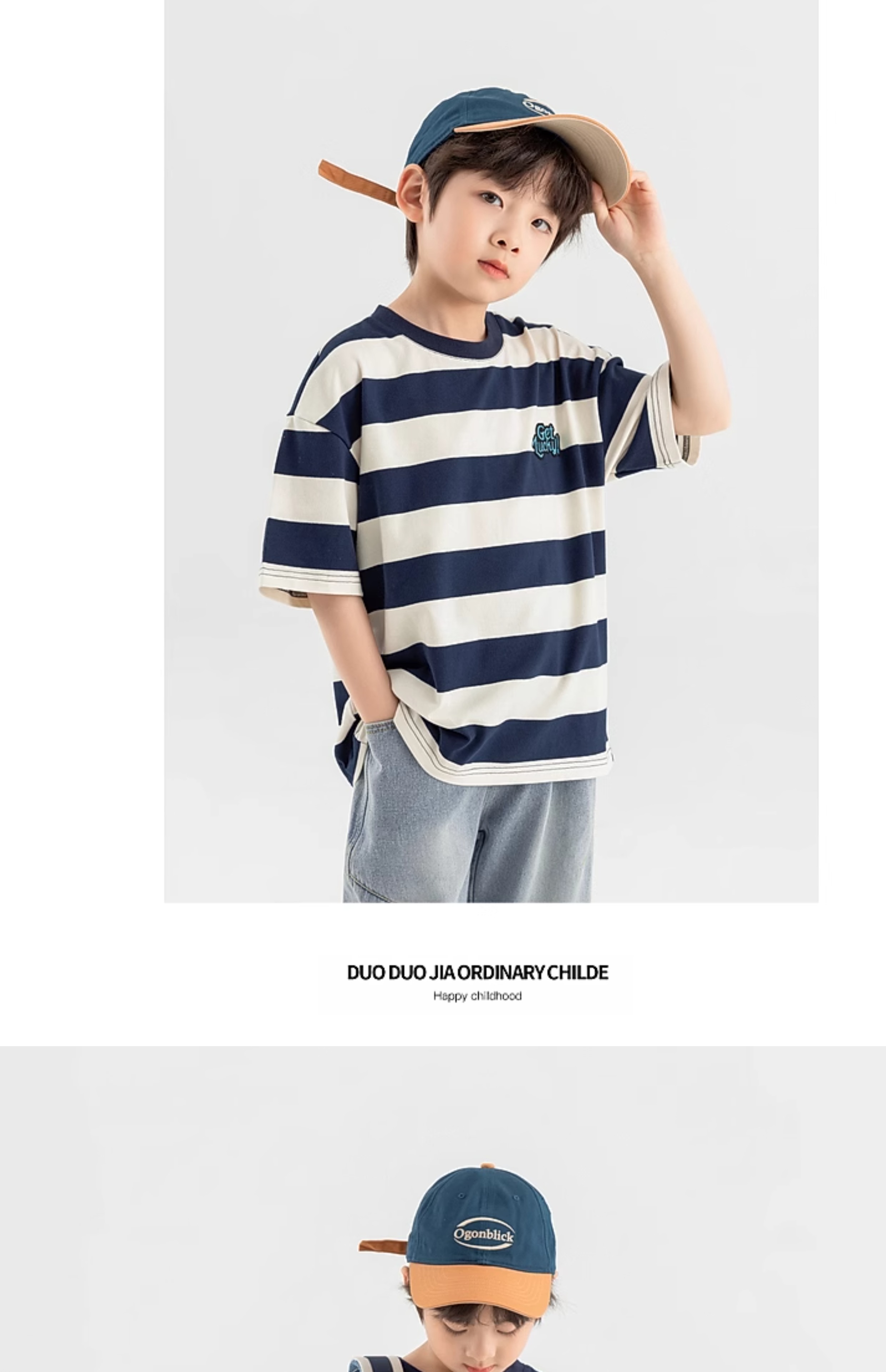 【团购价39.9-49.9】多多家男童条纹短袖T恤2025夏季新款儿童中大童半袖印花宽松上衣10803