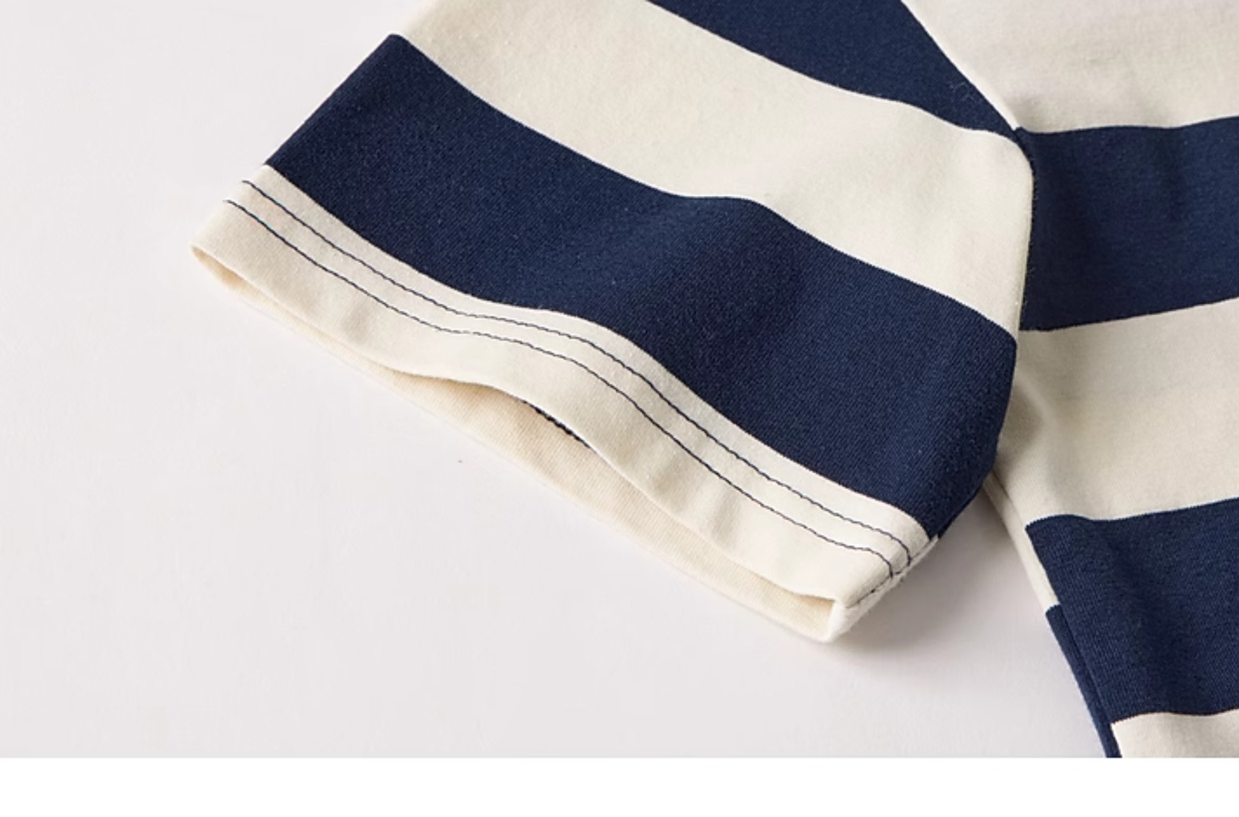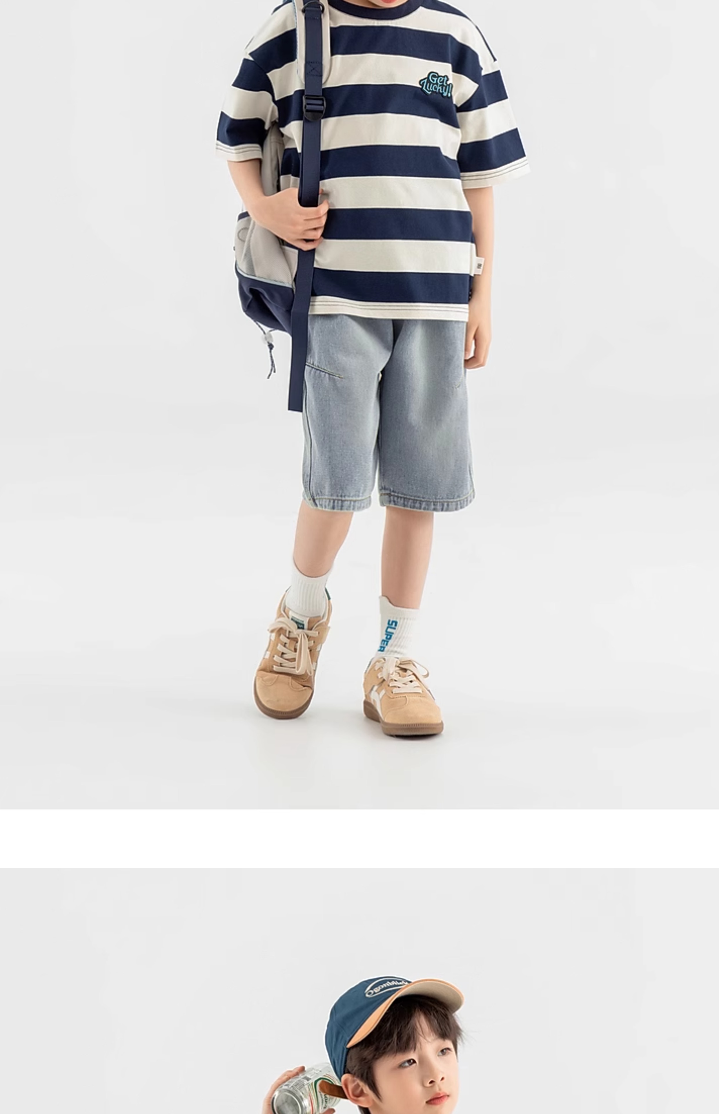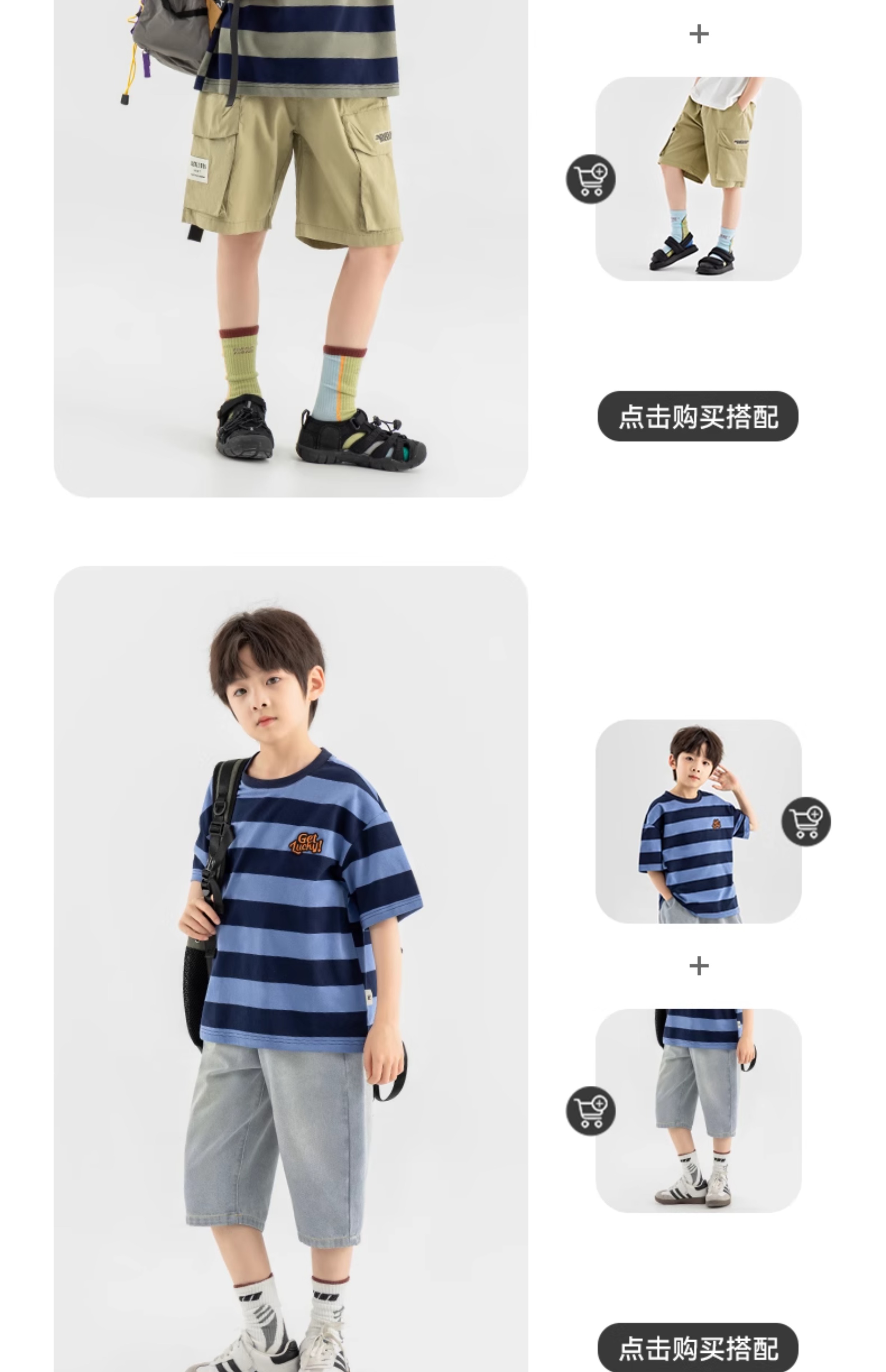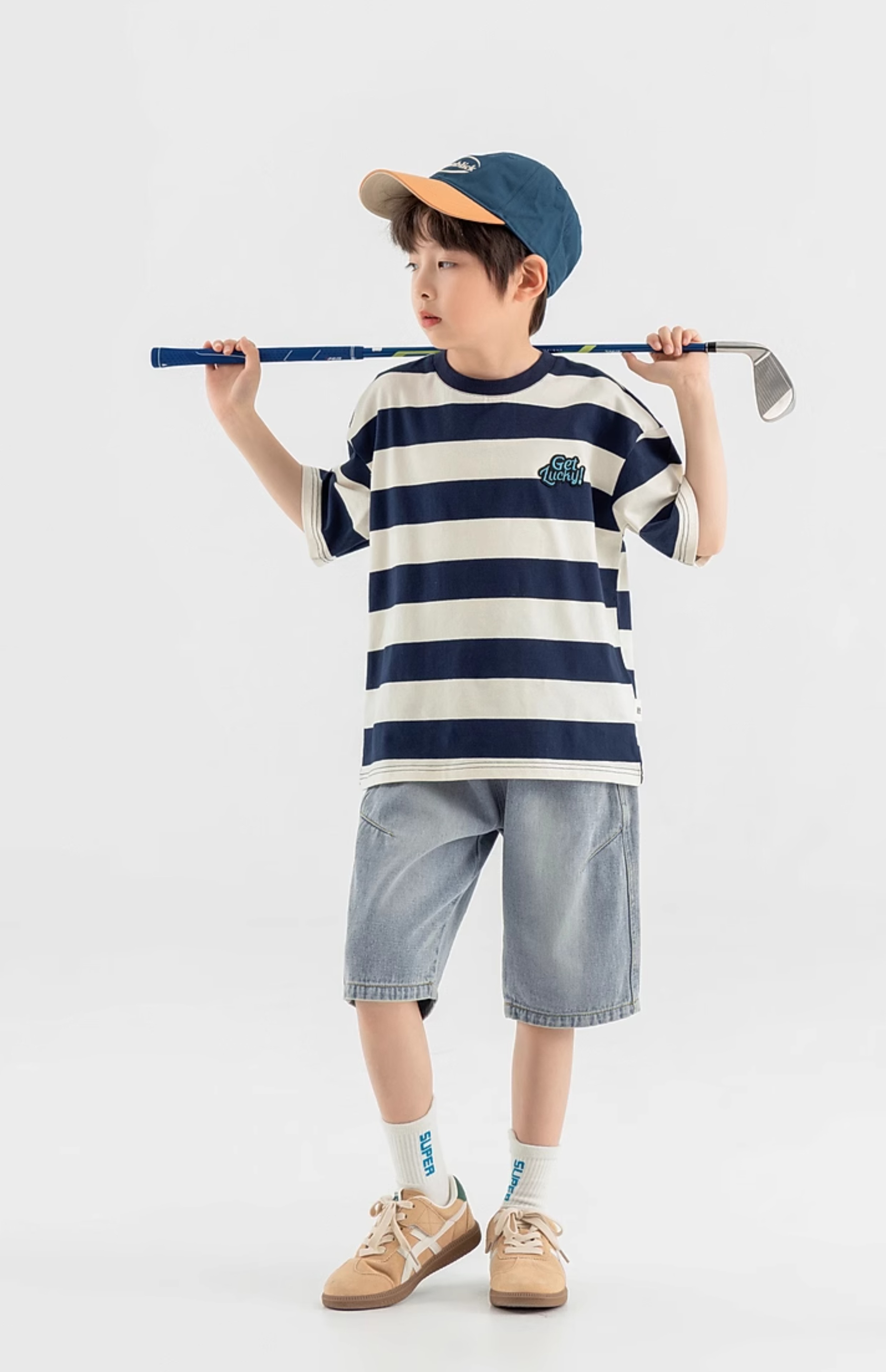 【团购价39.9-49.9】多多家男童条纹短袖T恤2025夏季新款儿童中大童半袖印花宽松上衣10803
