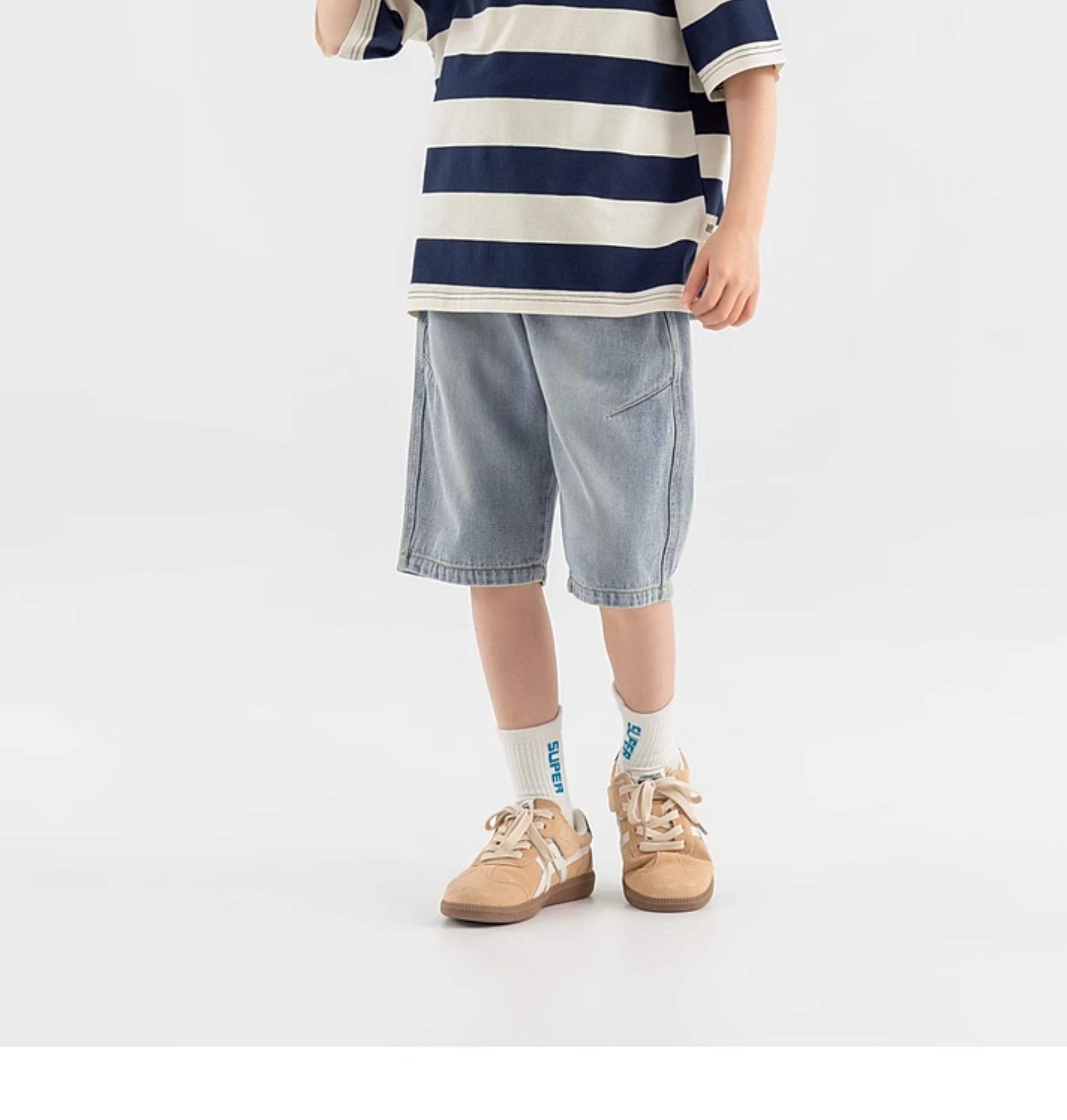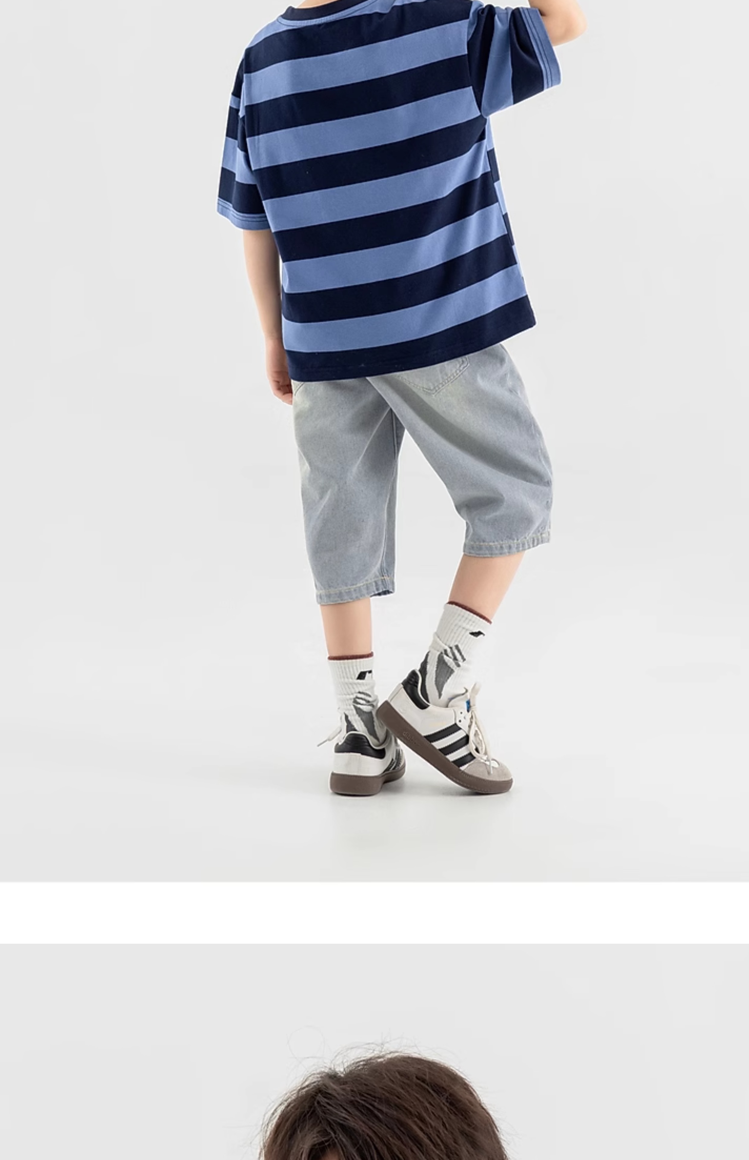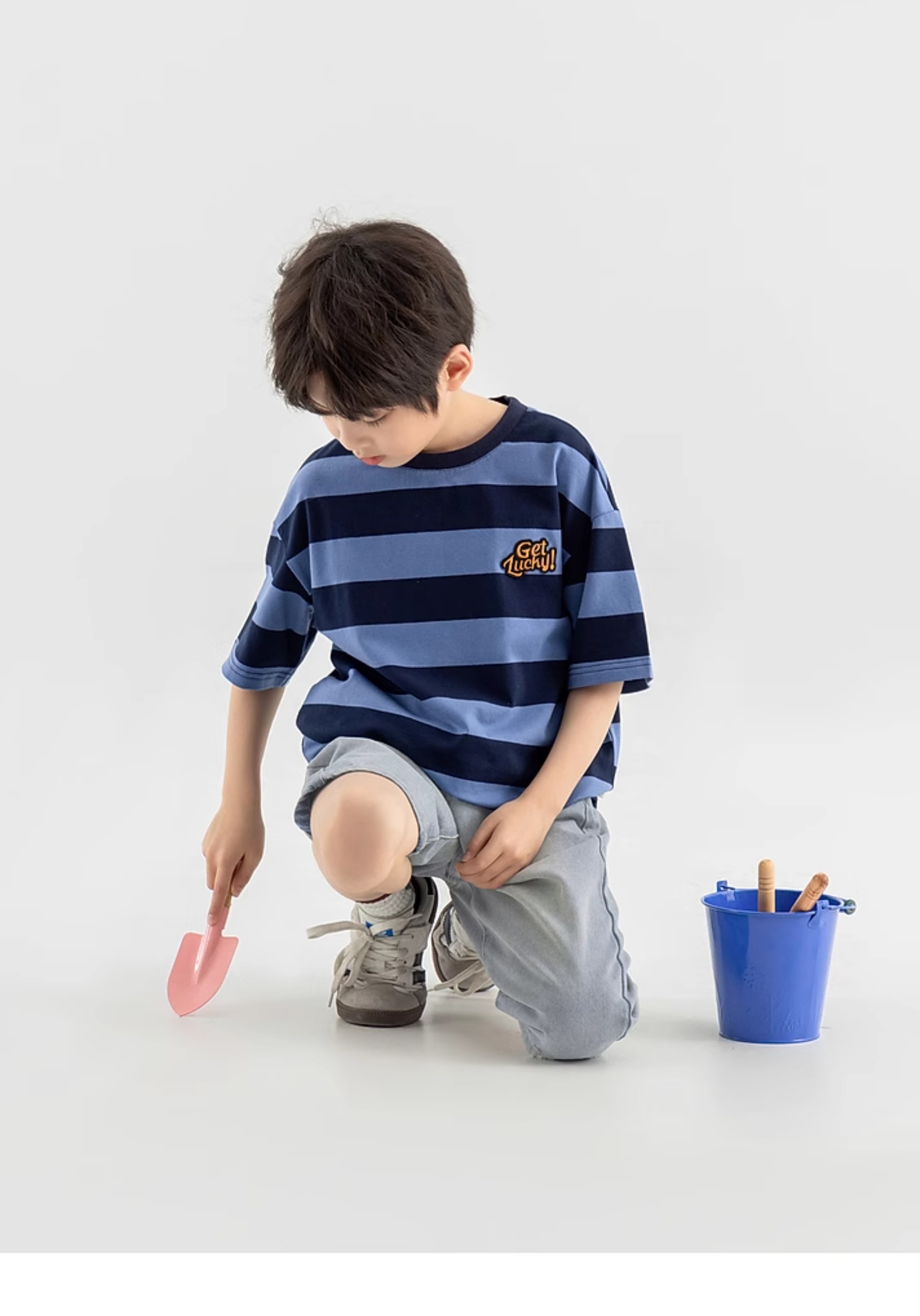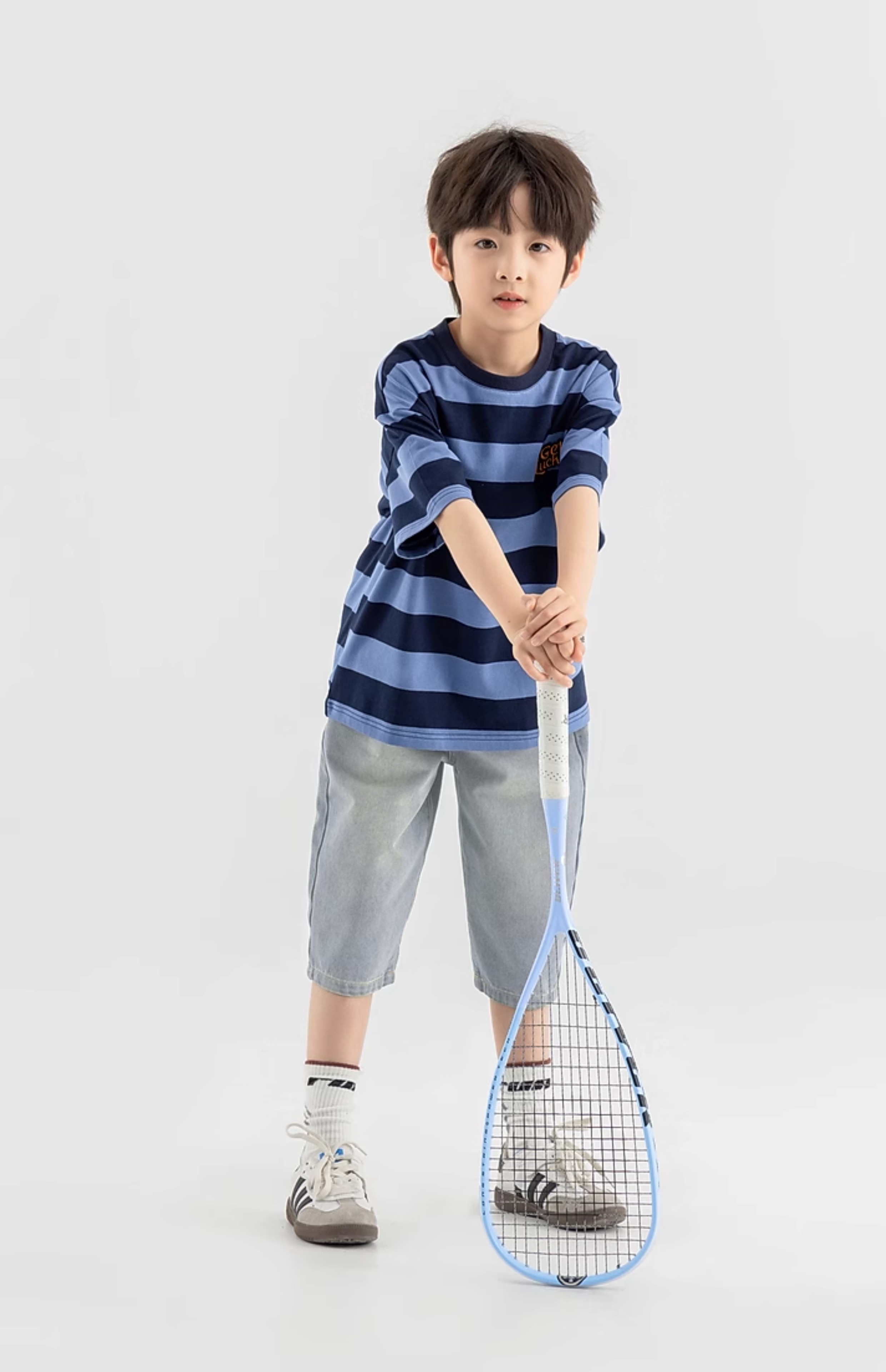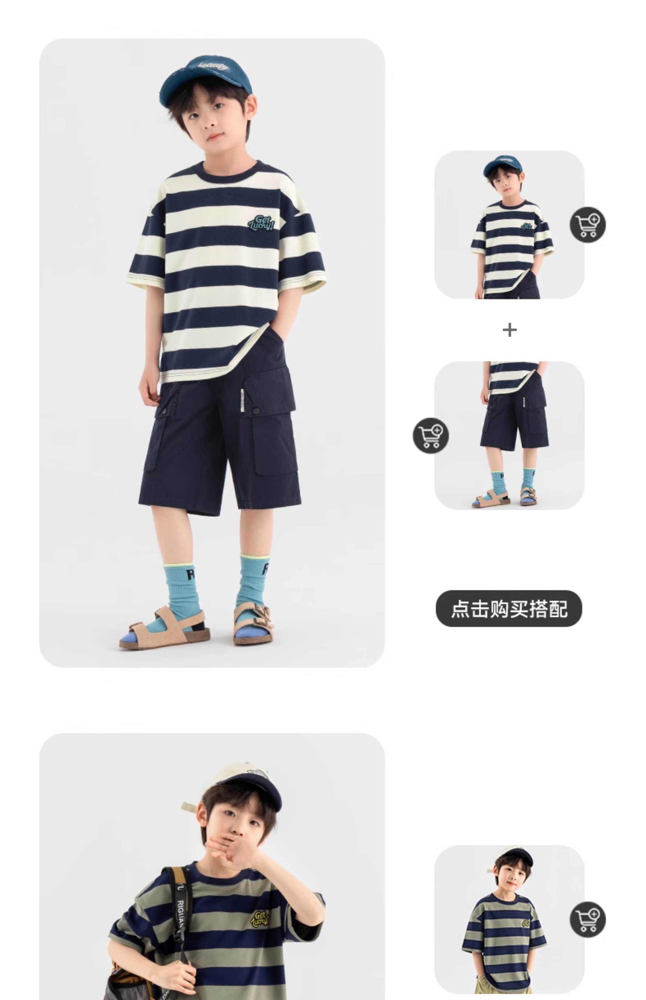 【团购价39.9-49.9】多多家男童条纹短袖T恤2025夏季新款儿童中大童半袖印花宽松上衣10803
