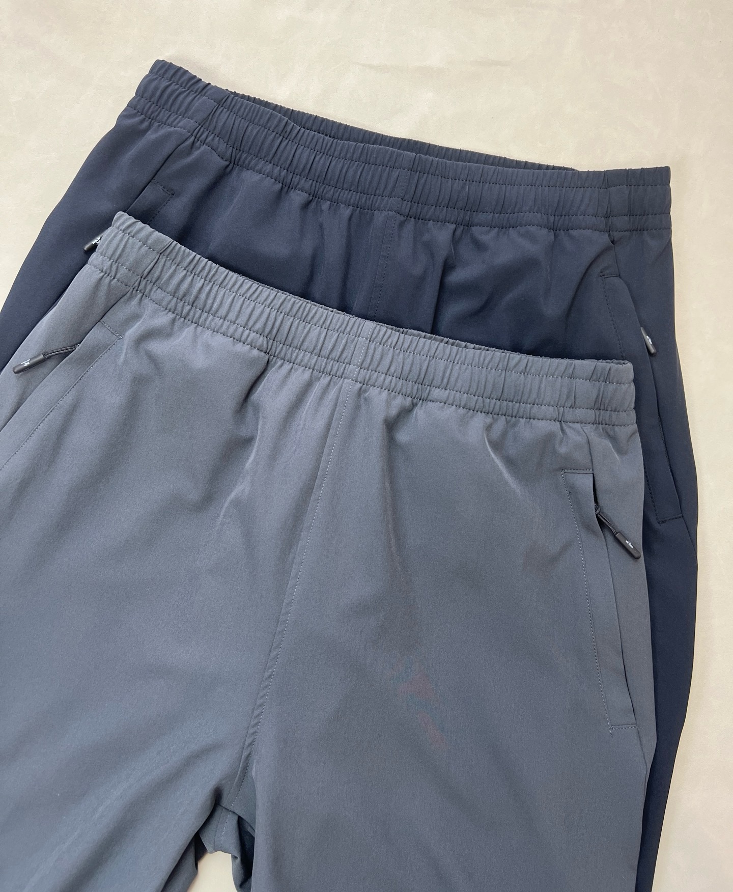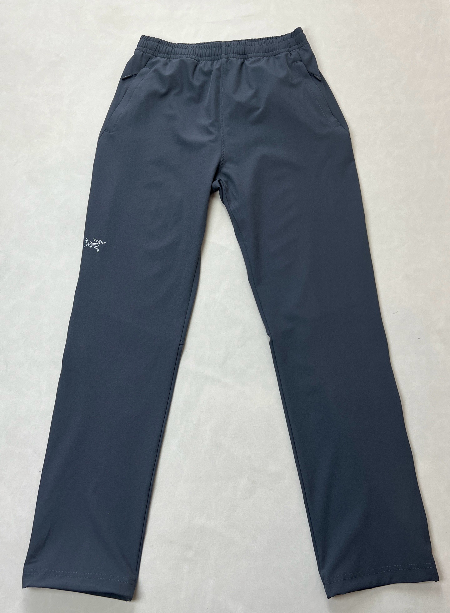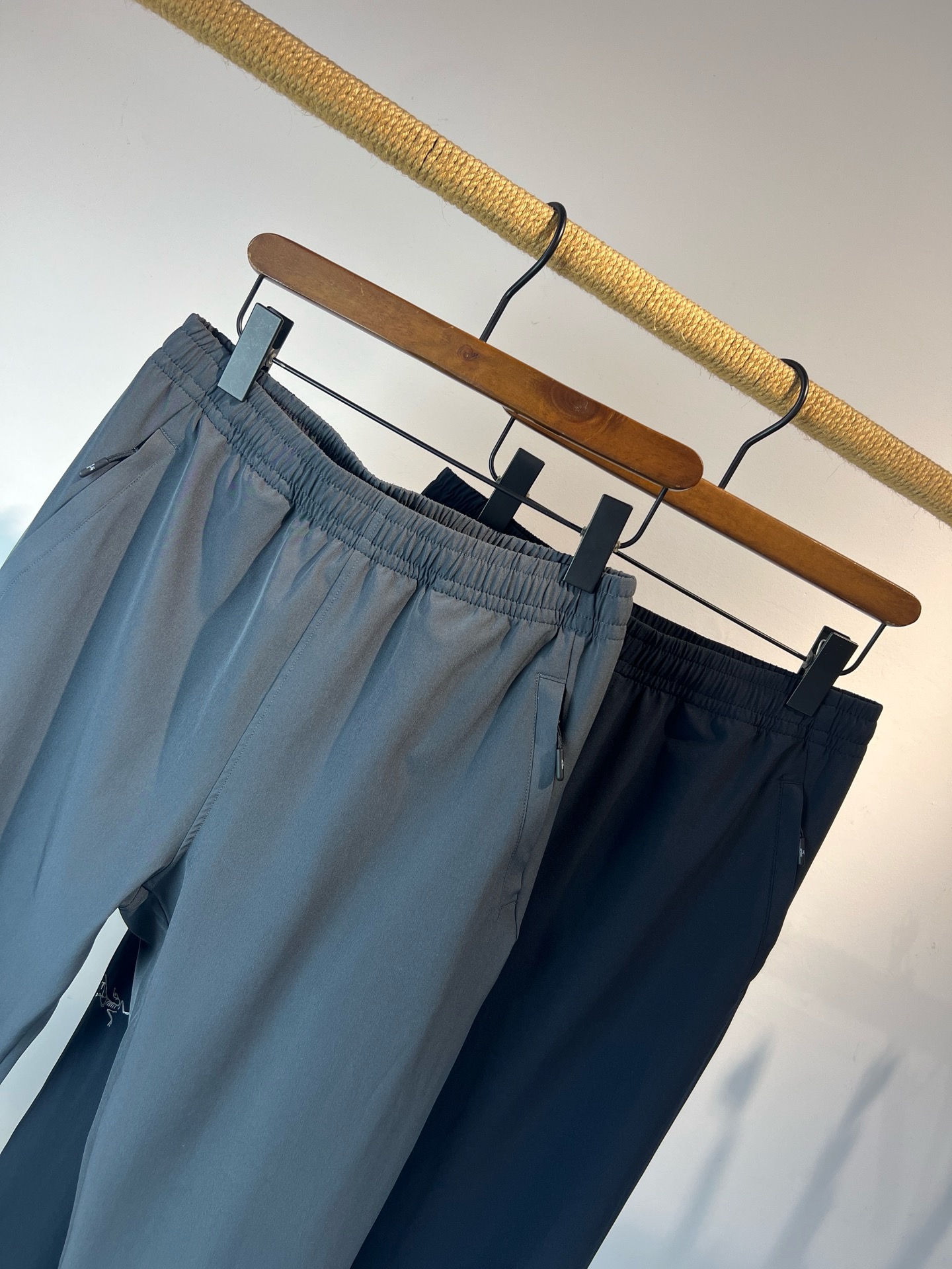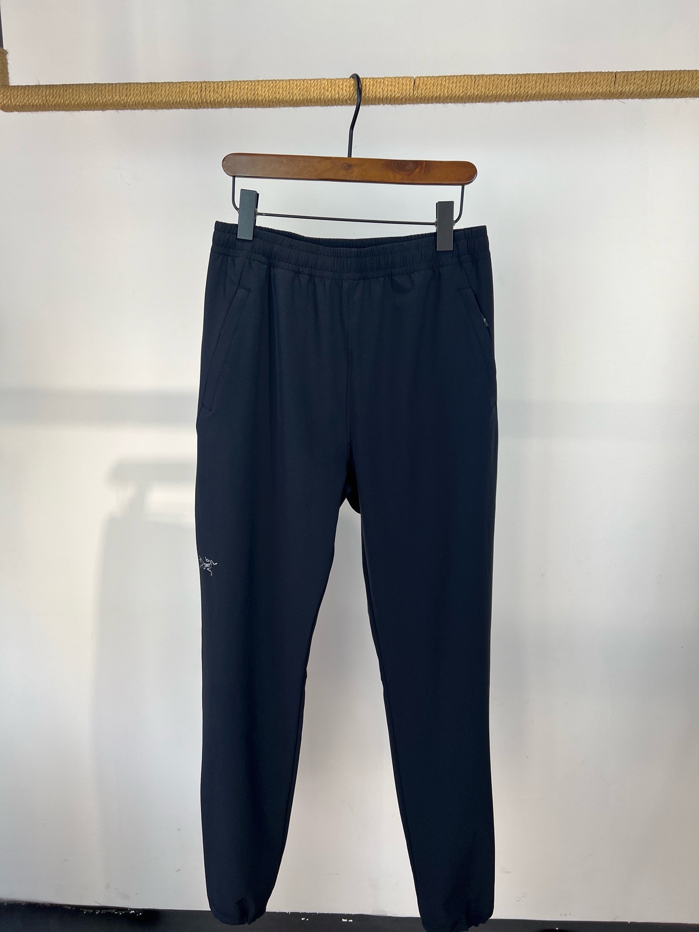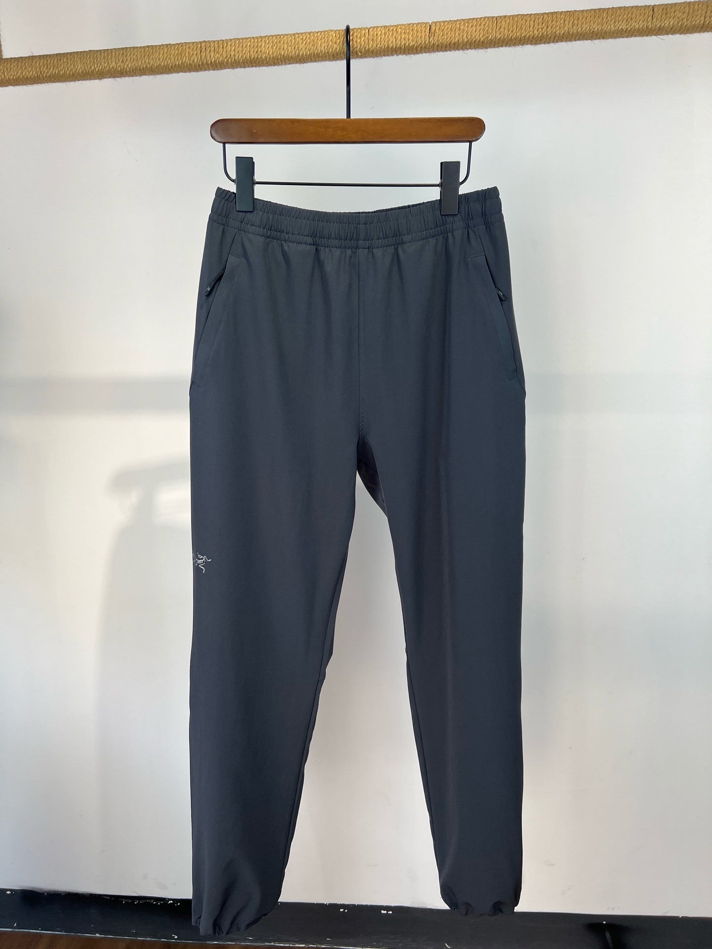 版型简约大气,两侧口袋拉链方便日常运动和出行。面料有弹性,透气舒适,裤脚抽绳设计,可收脚也可敞口。