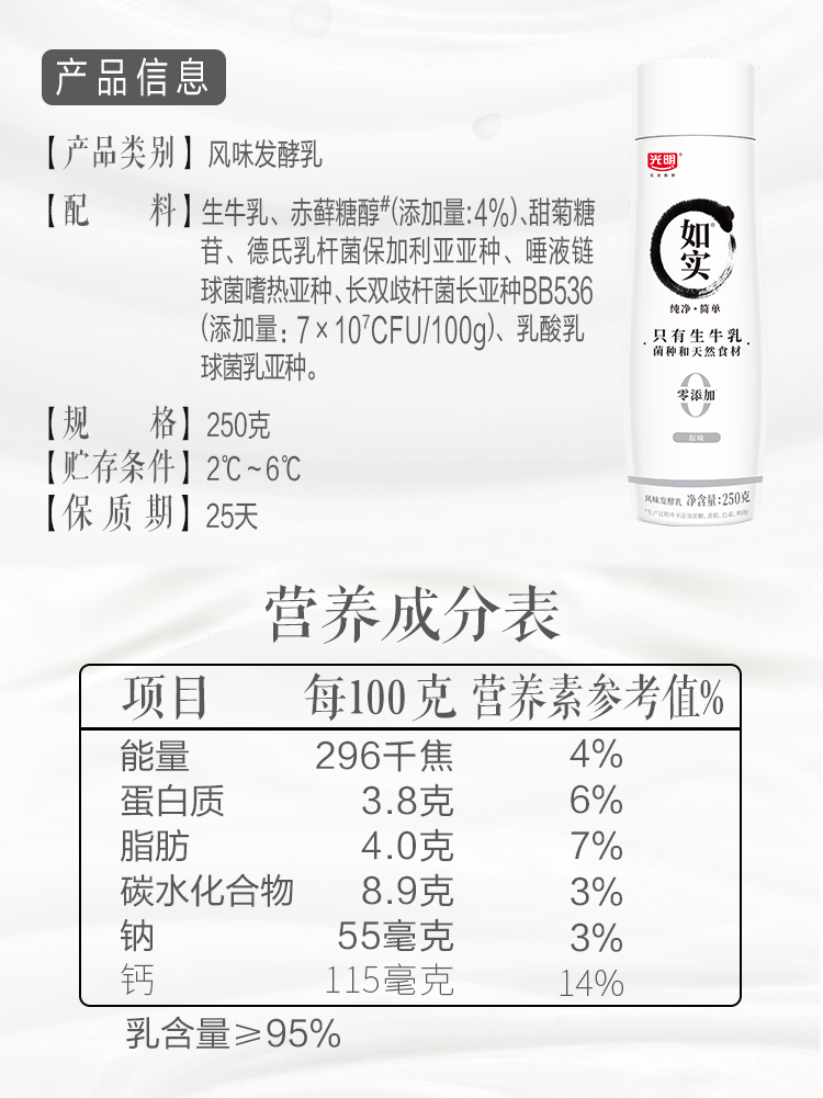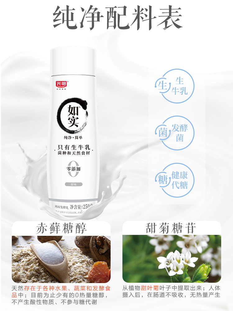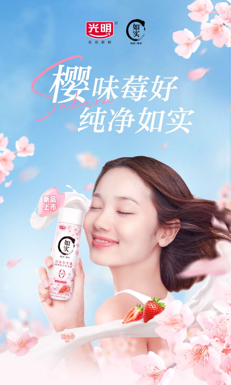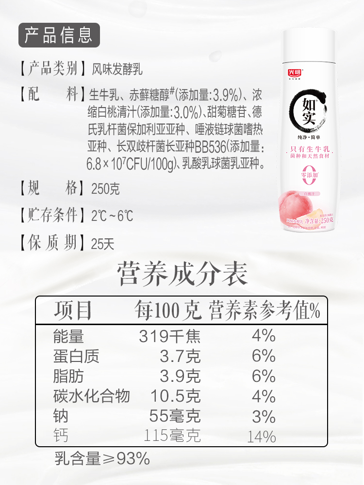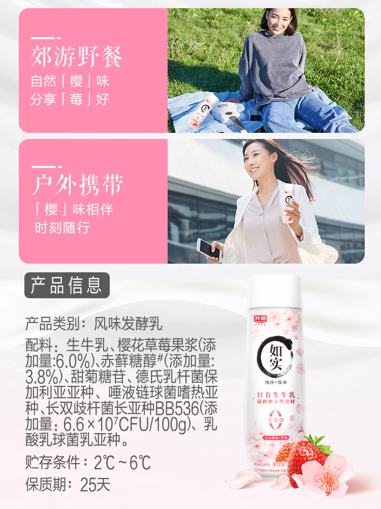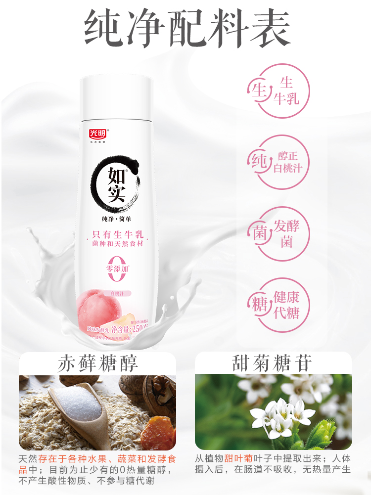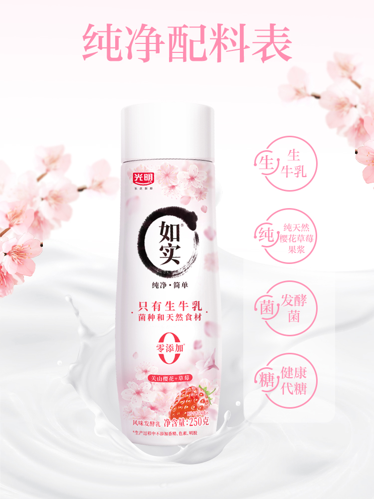 光明如实风味发酵乳250g原味、白桃汁、草莓樱花 250g*8