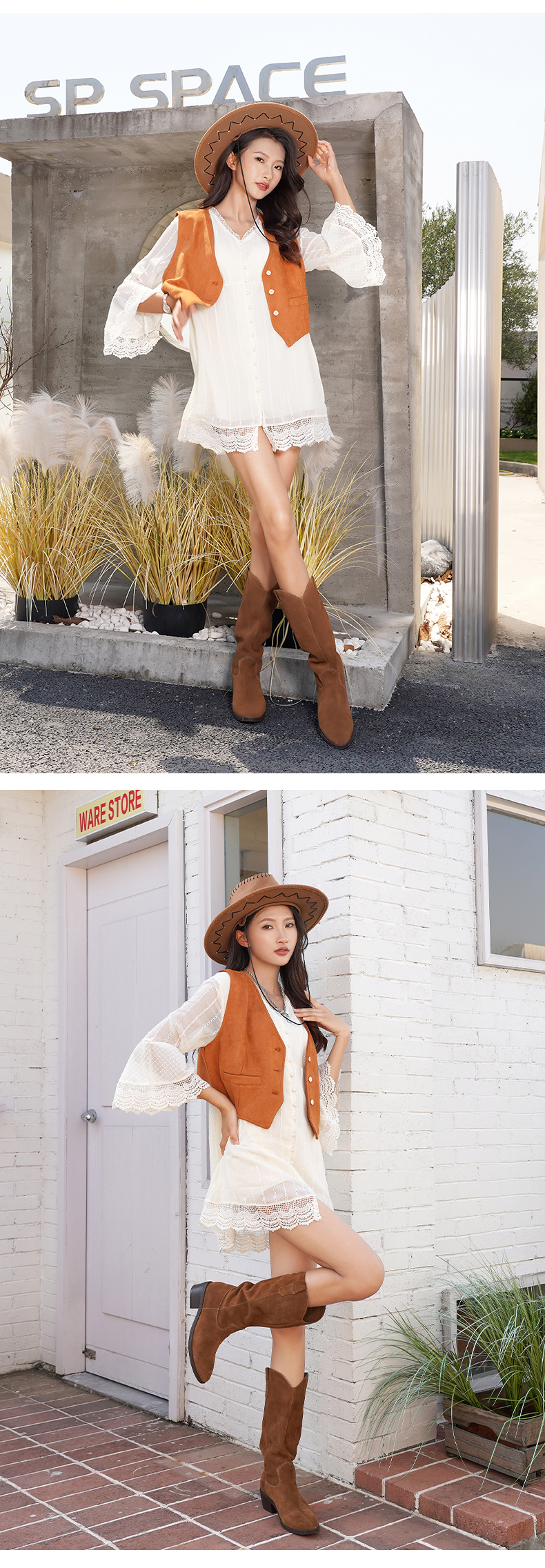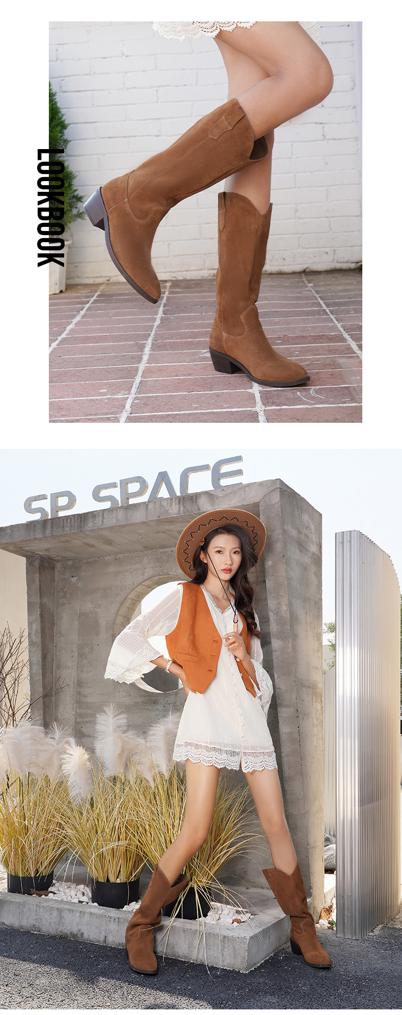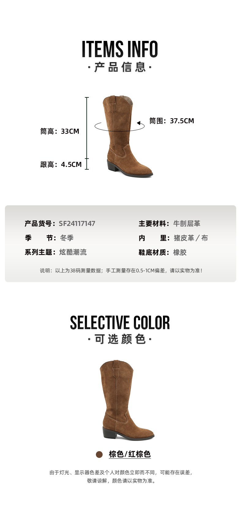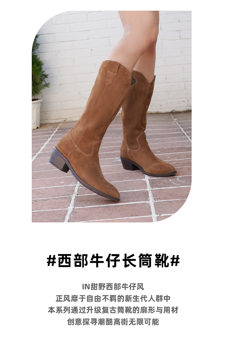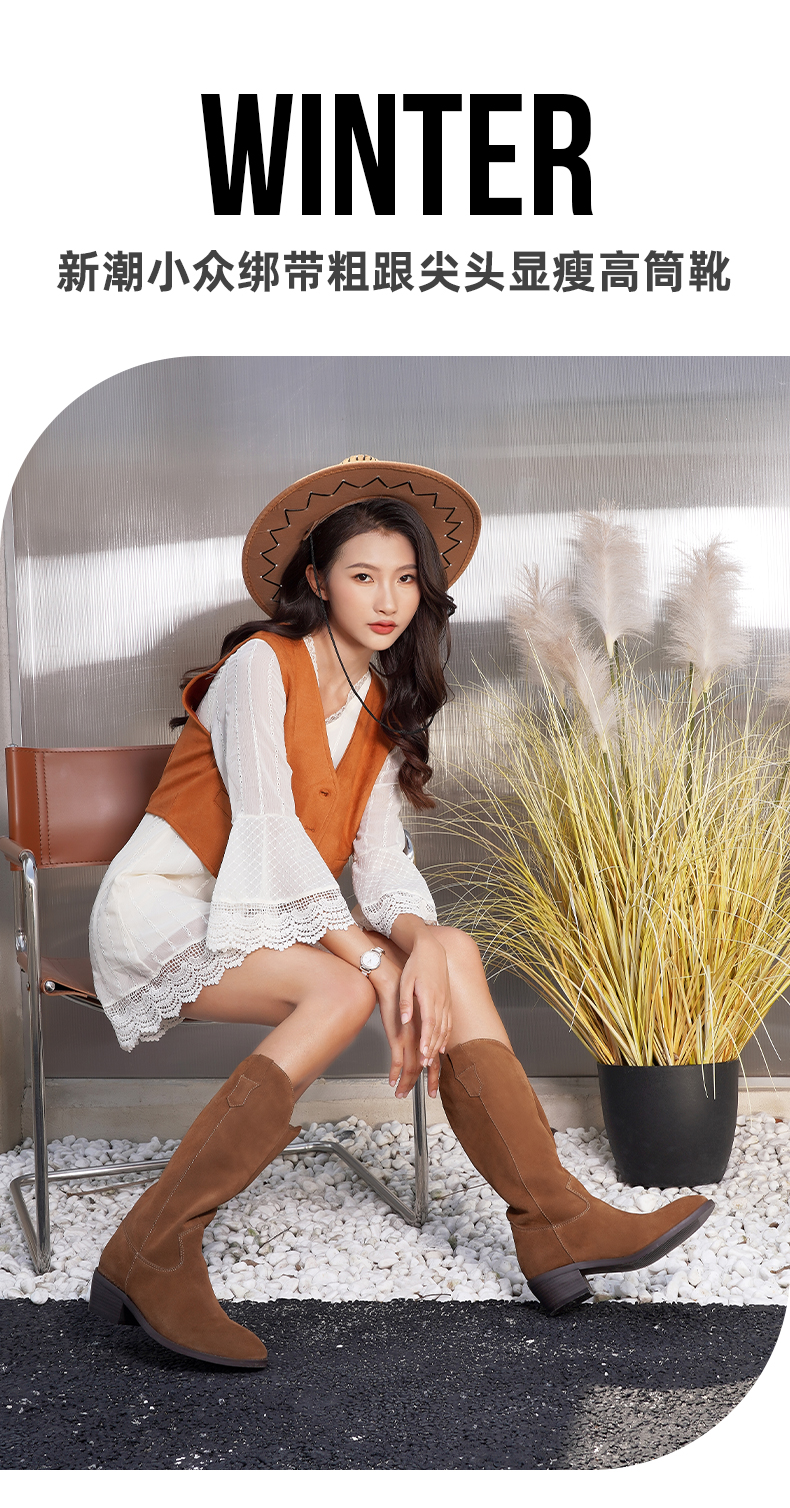 【春节不打烊】Safiya/索菲娅 西部牛仔靴2022冬季新款复古尖头粗跟长靴显瘦长筒靴女 SF24117147