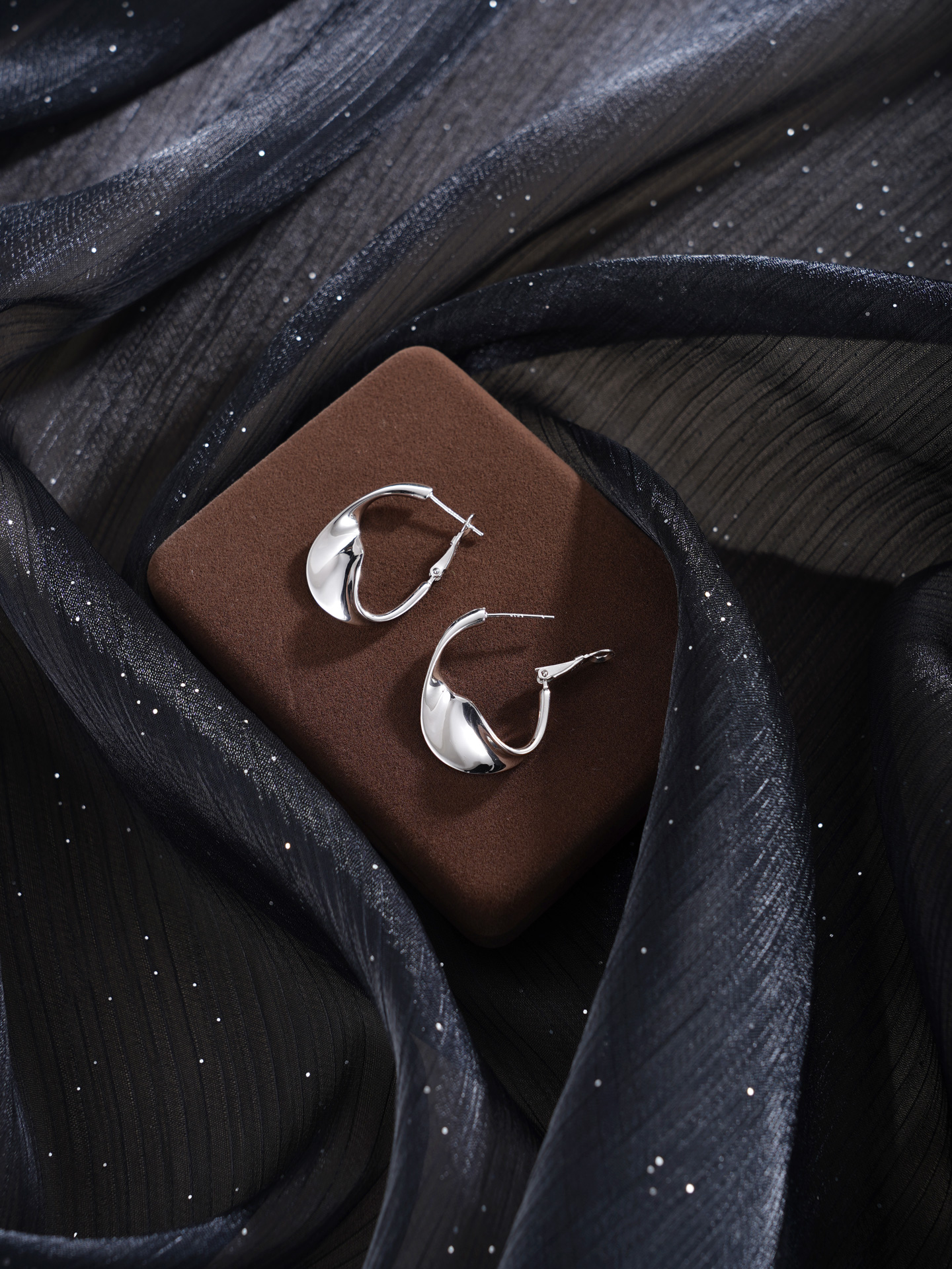 【寓意】:纯银异形耳饰,以不规则曲线凸显自由格调。寓意心怀澄澈,不囿于形,活出本真之色。