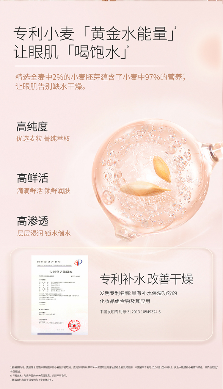 【小麦眼贴膜】淡化黑眼圈 淡化细纹 焕亮眼周 小麦胚芽水润倍护眼贴膜(6对/盒)