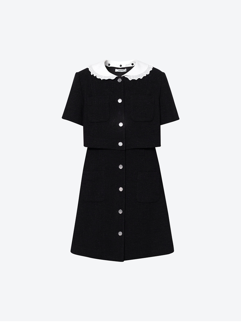 【商场同款】诗凡黎圆领蕾丝边连衣裙2025春新款长裙女3G3190011