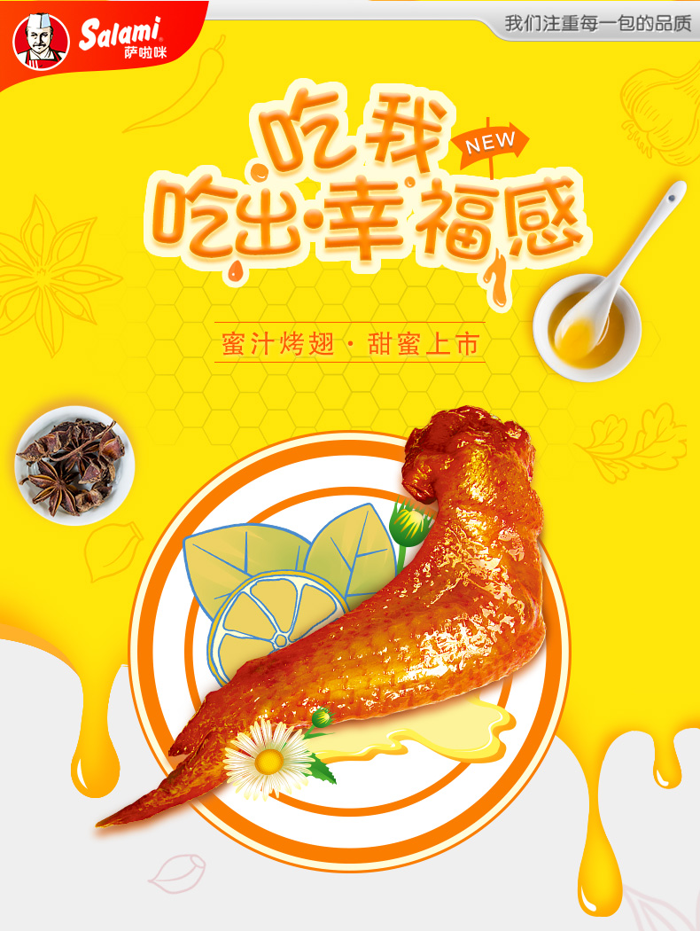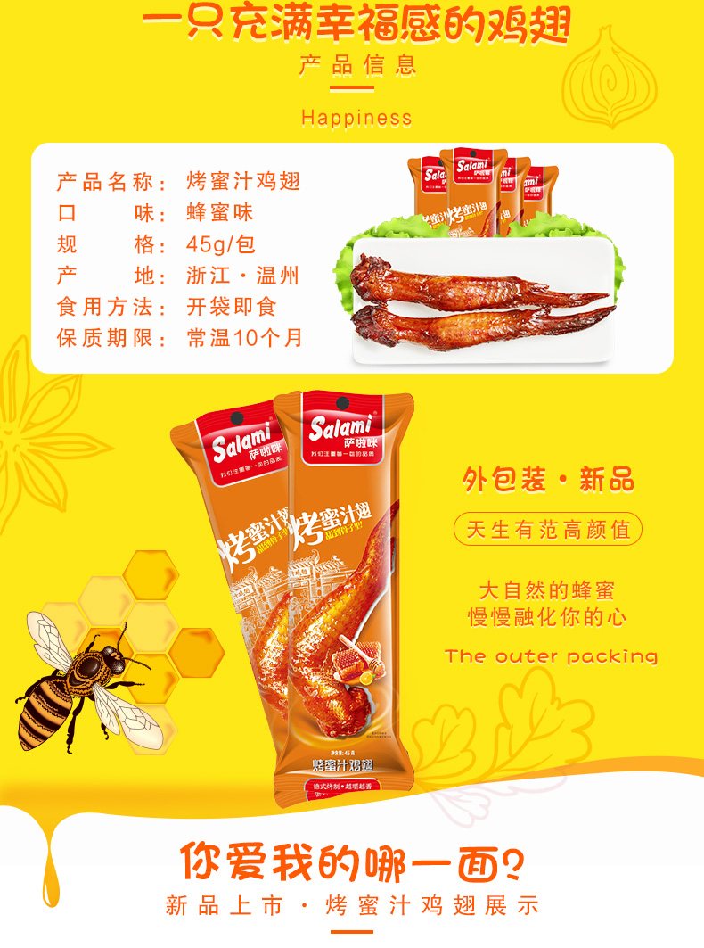 萨啦咪 新品蜜汁鸡翅45g*5 萨拉米全鸡翅膀零食