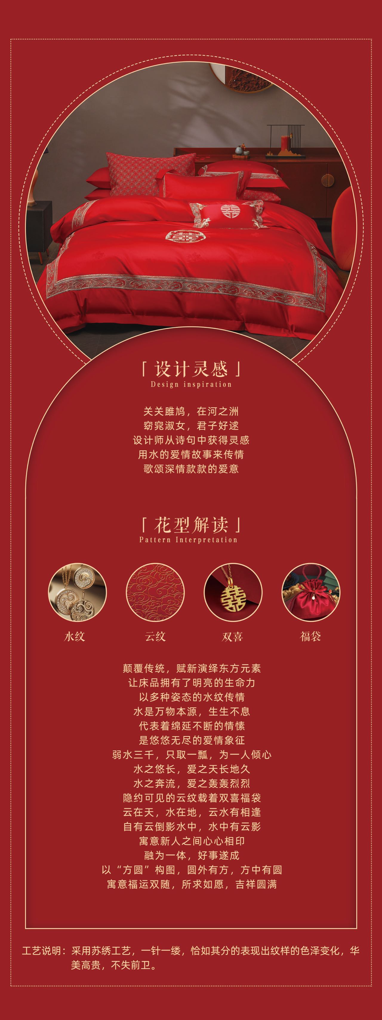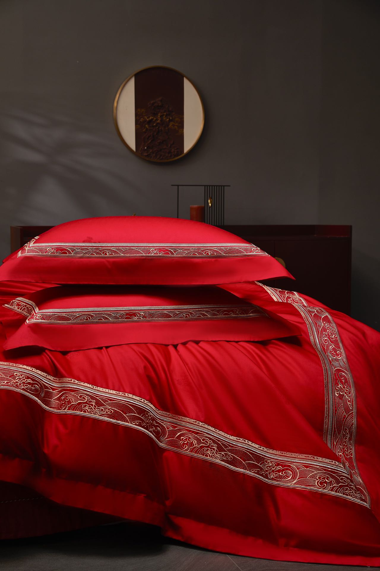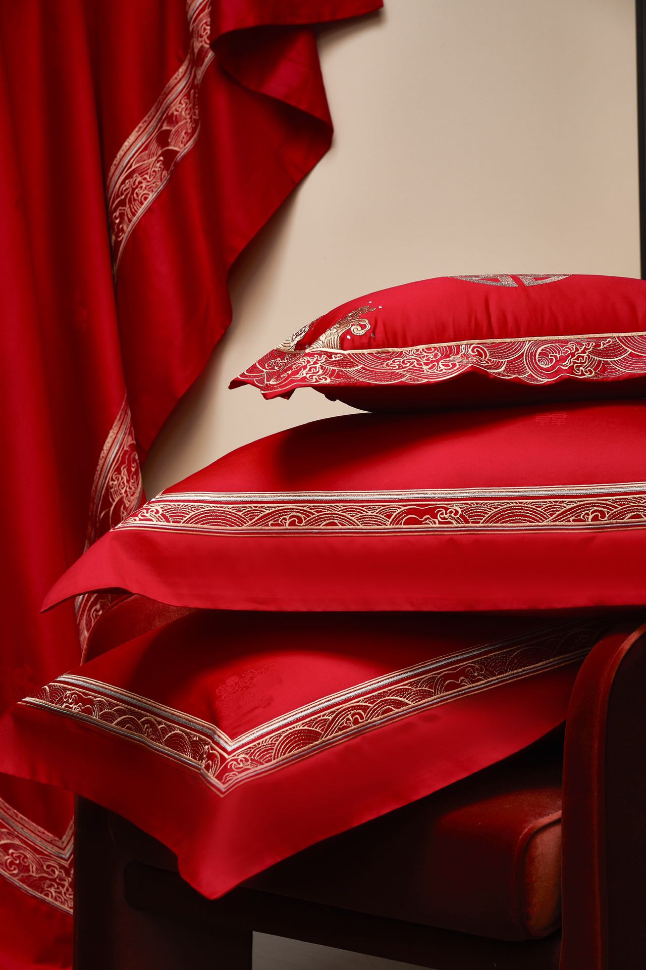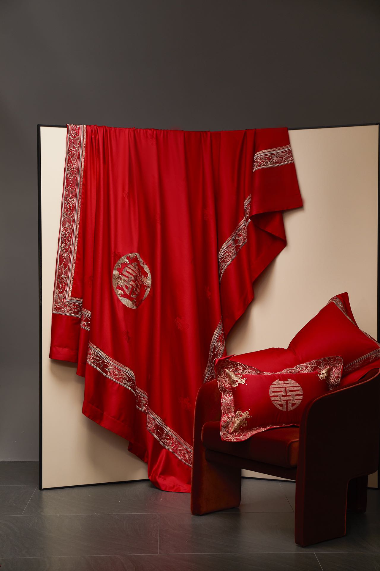 利路米家纺高档婚嫁婚庆喜被六件套百支棉陪嫁大红色系--欢喜