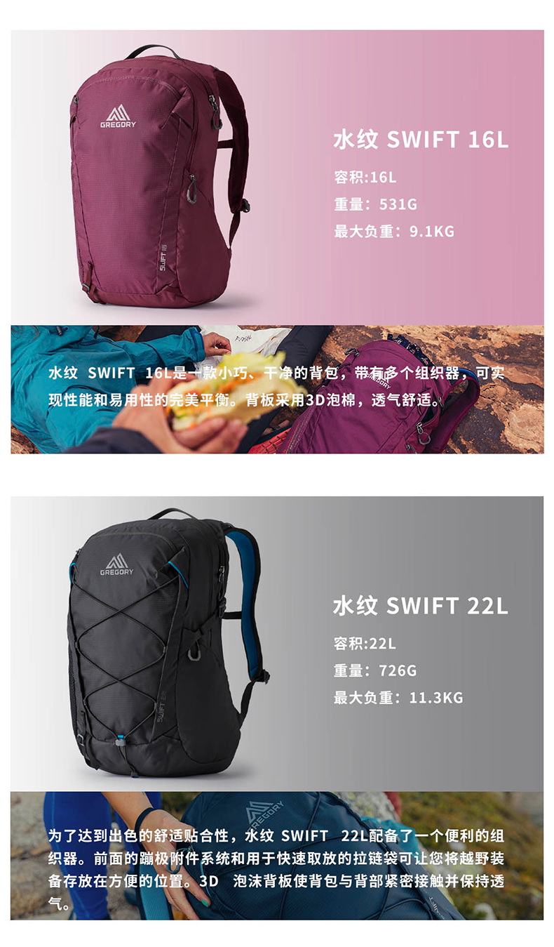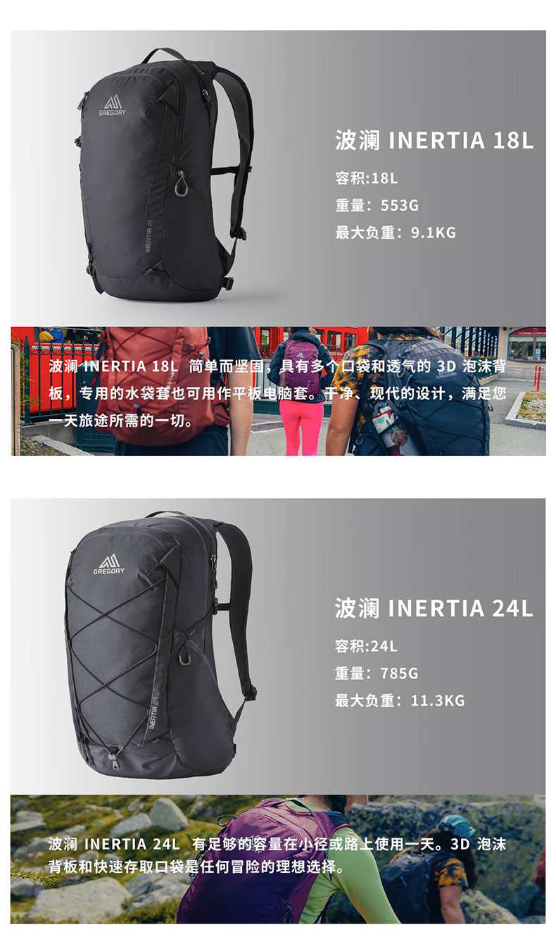Gregory格里高利INERTIA波澜 SWIFT水纹户外双肩包徒步登山包18升24升旅行背包