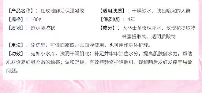百花萃 红玫瑰鲜活保湿凝胶100g 日夜补水保湿养肤