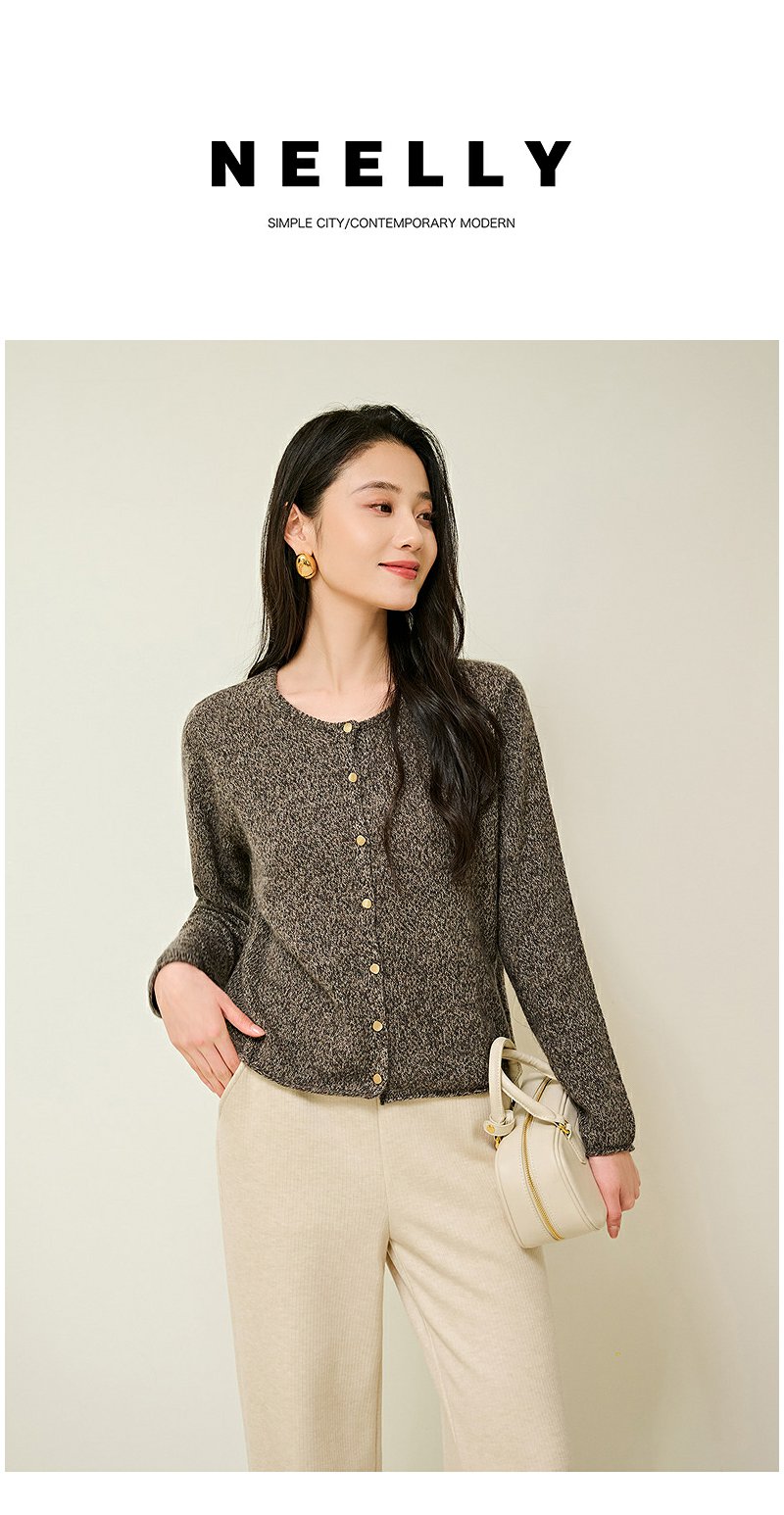 NEELLY纳俪商场同款冬季新款圆领针织开衫女简约气质百搭上衣N25104A06607