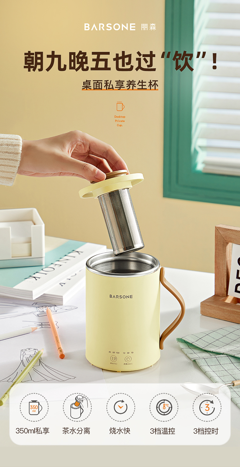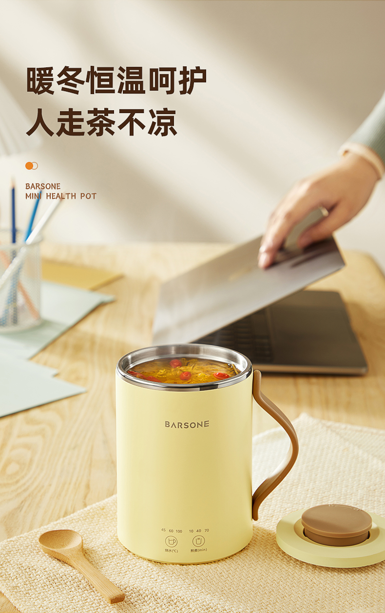 【桌面养生推荐】朋森办公室养生杯迷你多功能便携式电热烧水杯小型煮粥煮茶炖煮杯