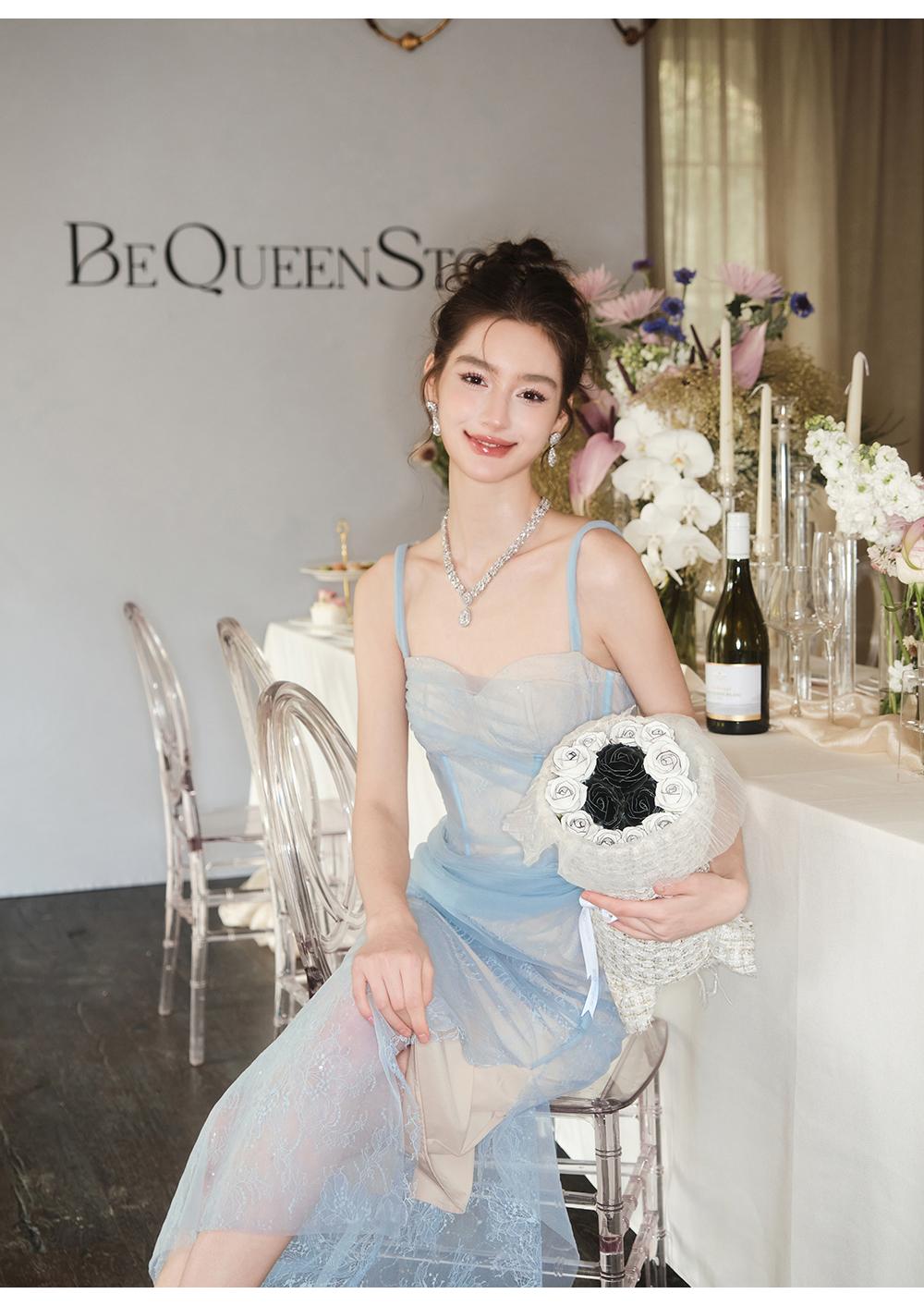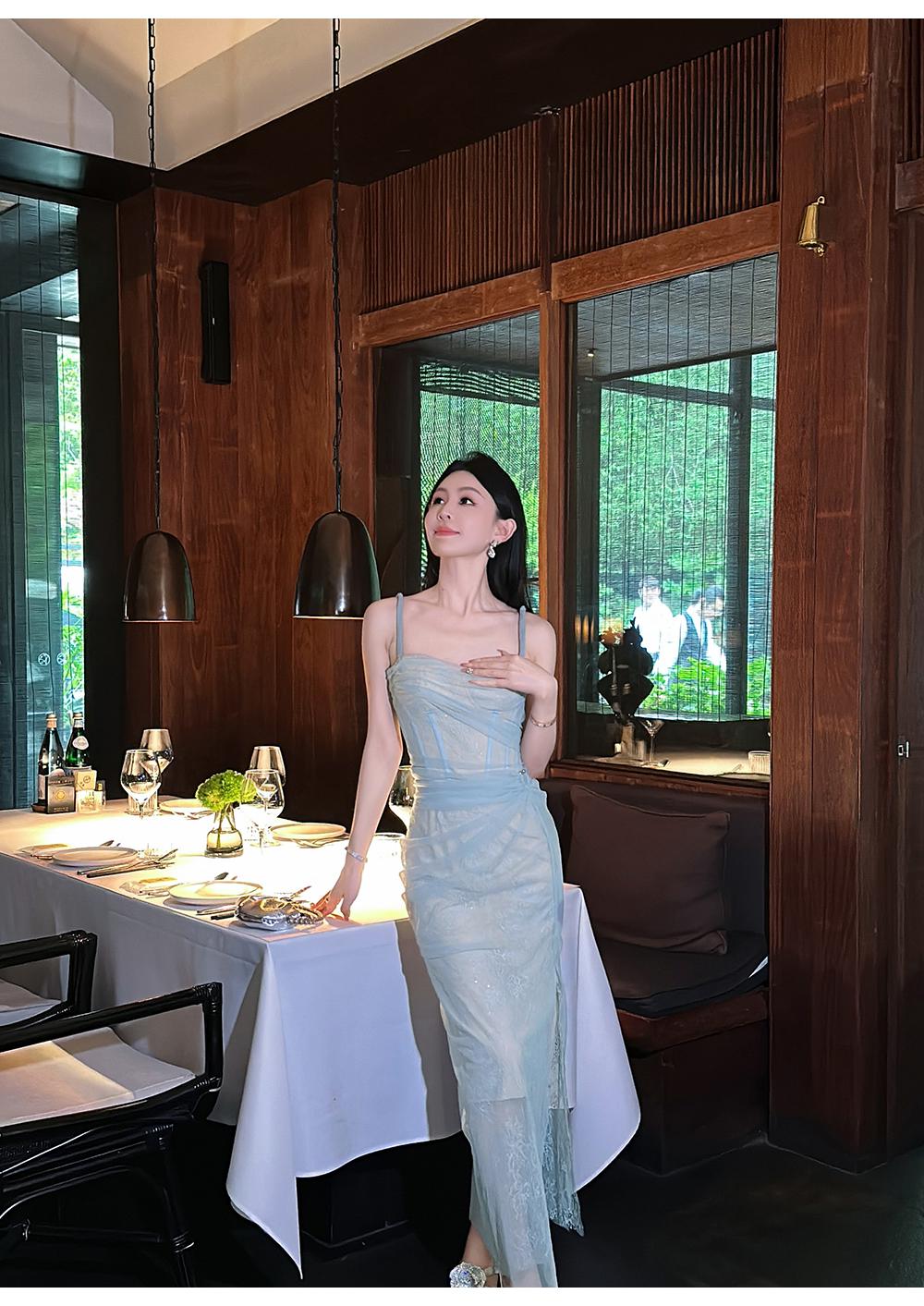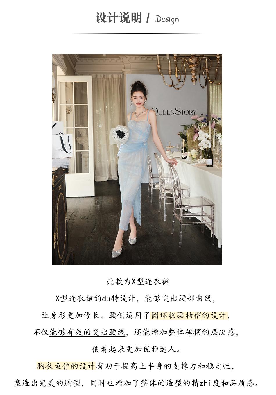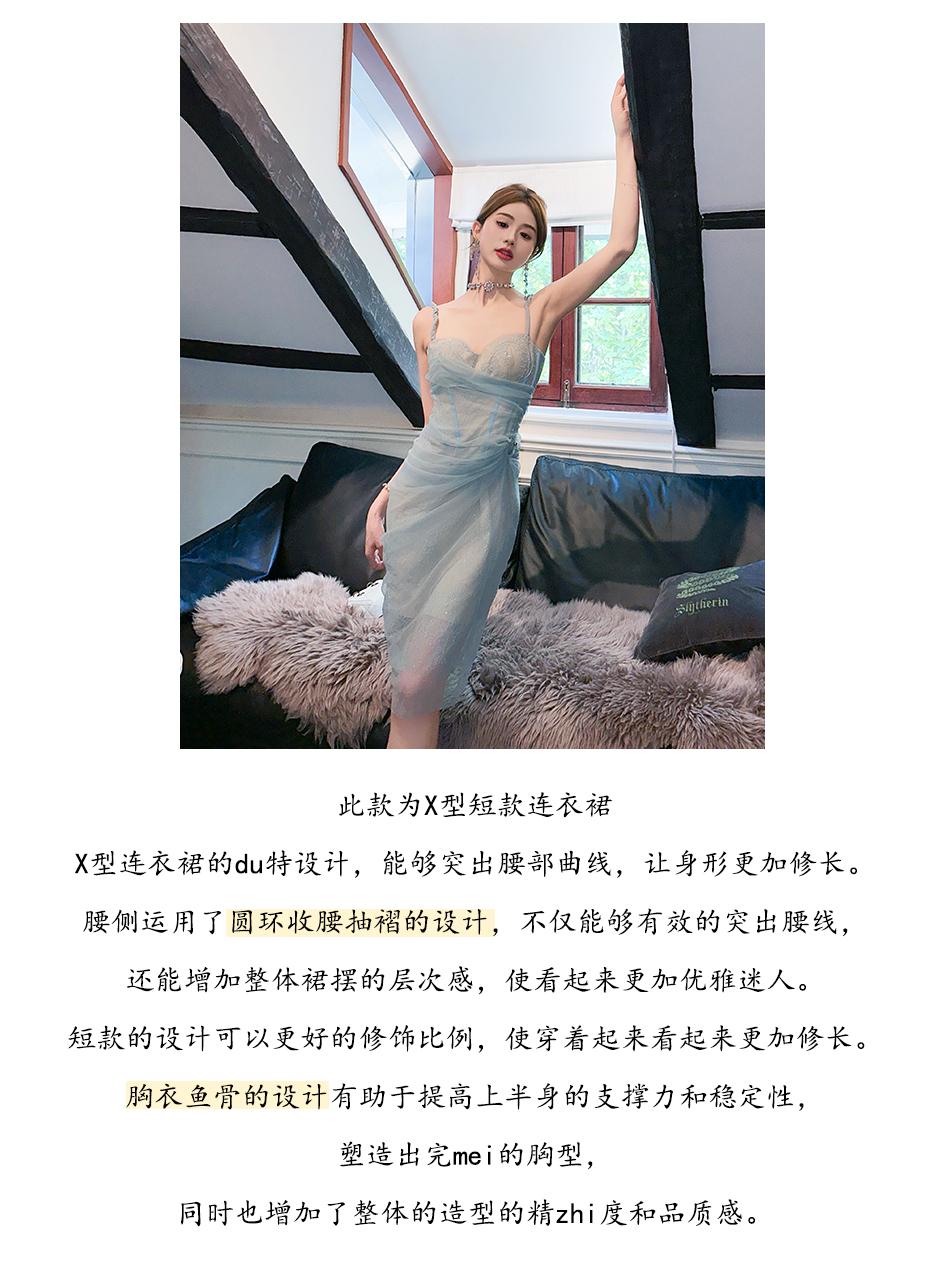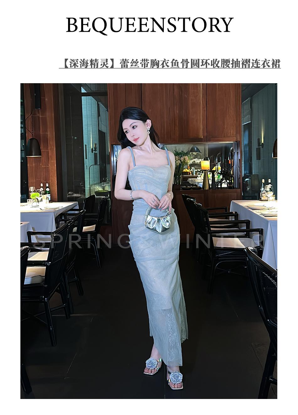 余潇潇【深海精灵】优雅蕾丝带胸衣鱼骨圆环收腰抽褶连衣裙