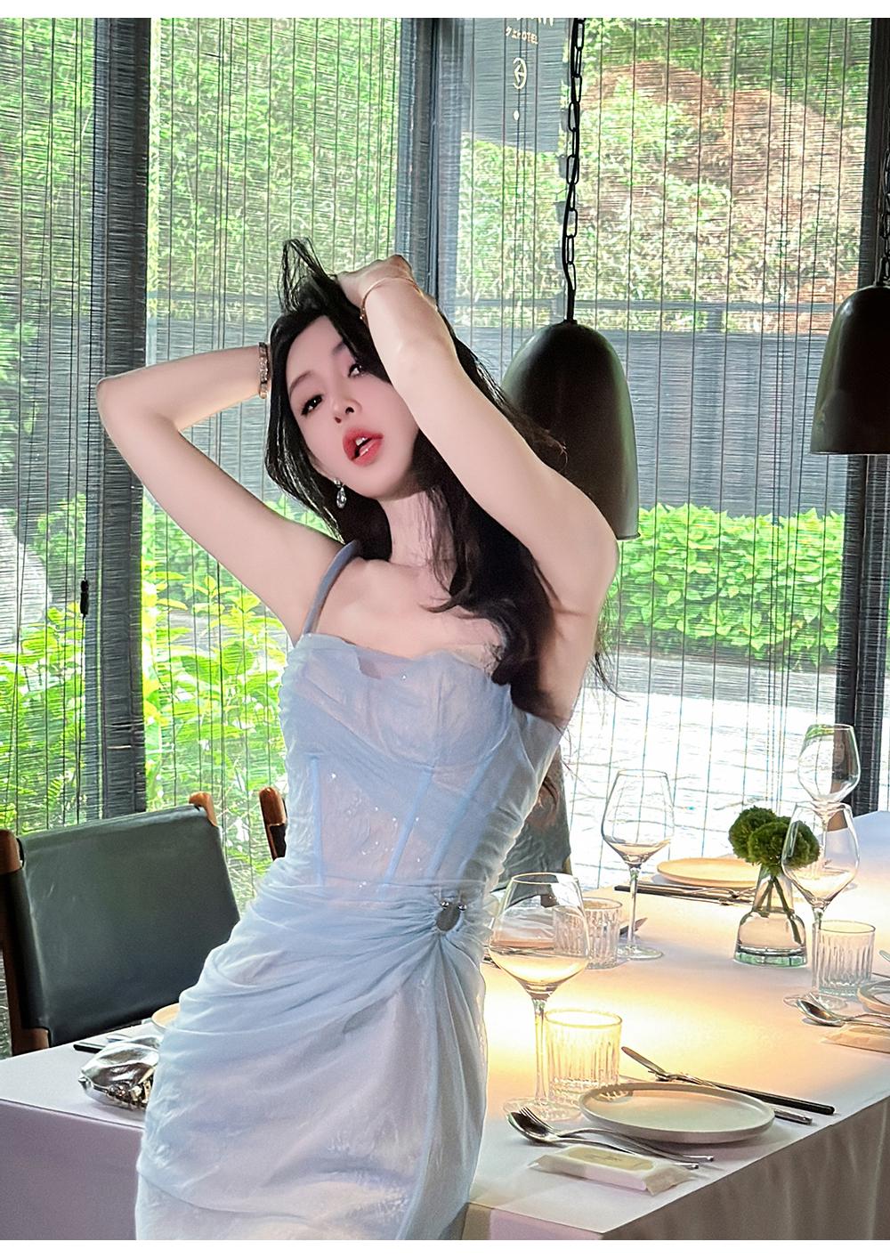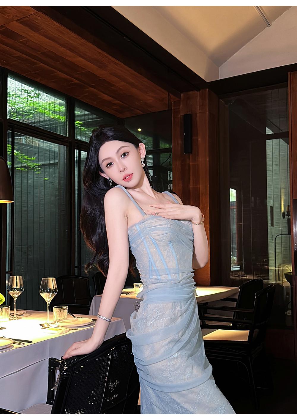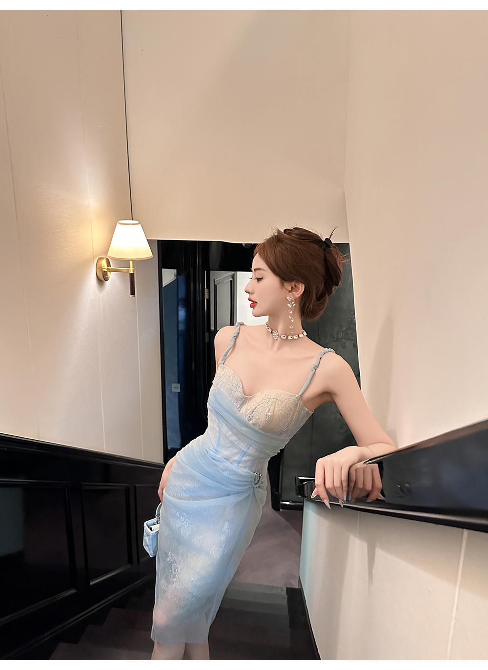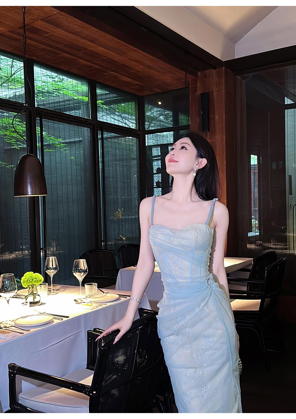 余潇潇【深海精灵】优雅蕾丝带胸衣鱼骨圆环收腰抽褶连衣裙