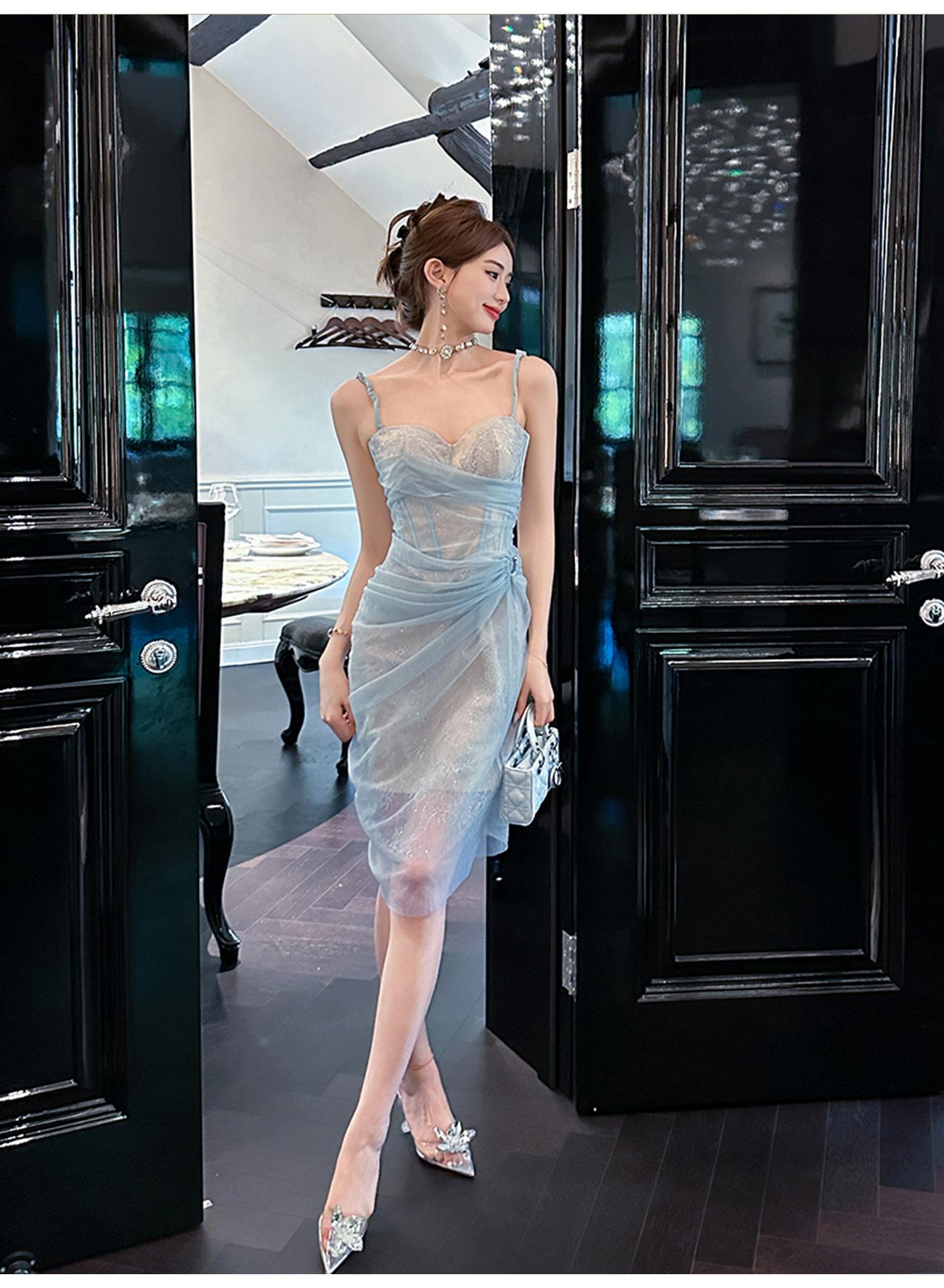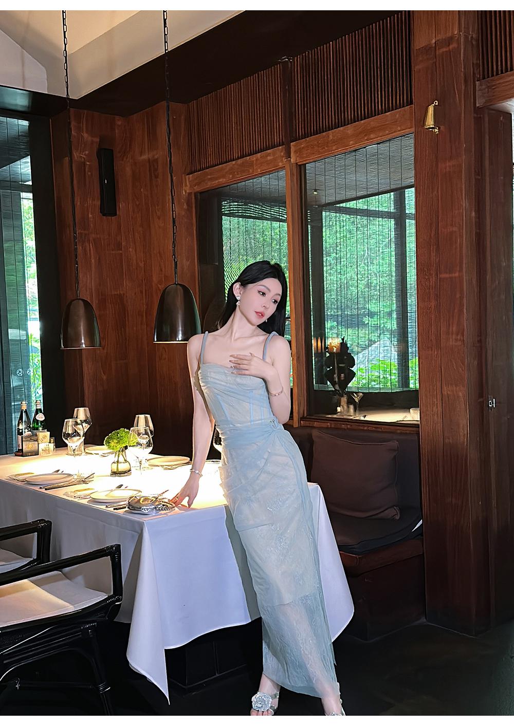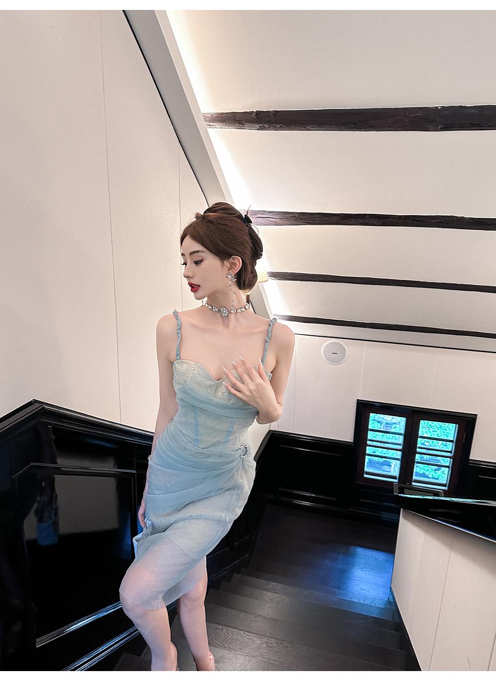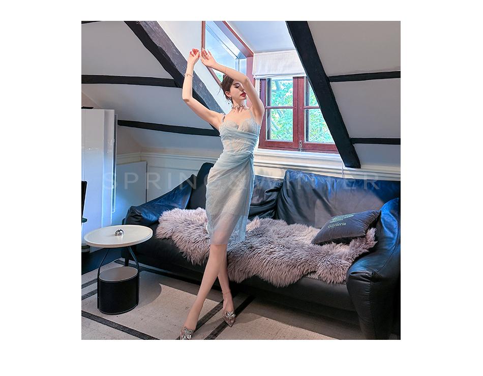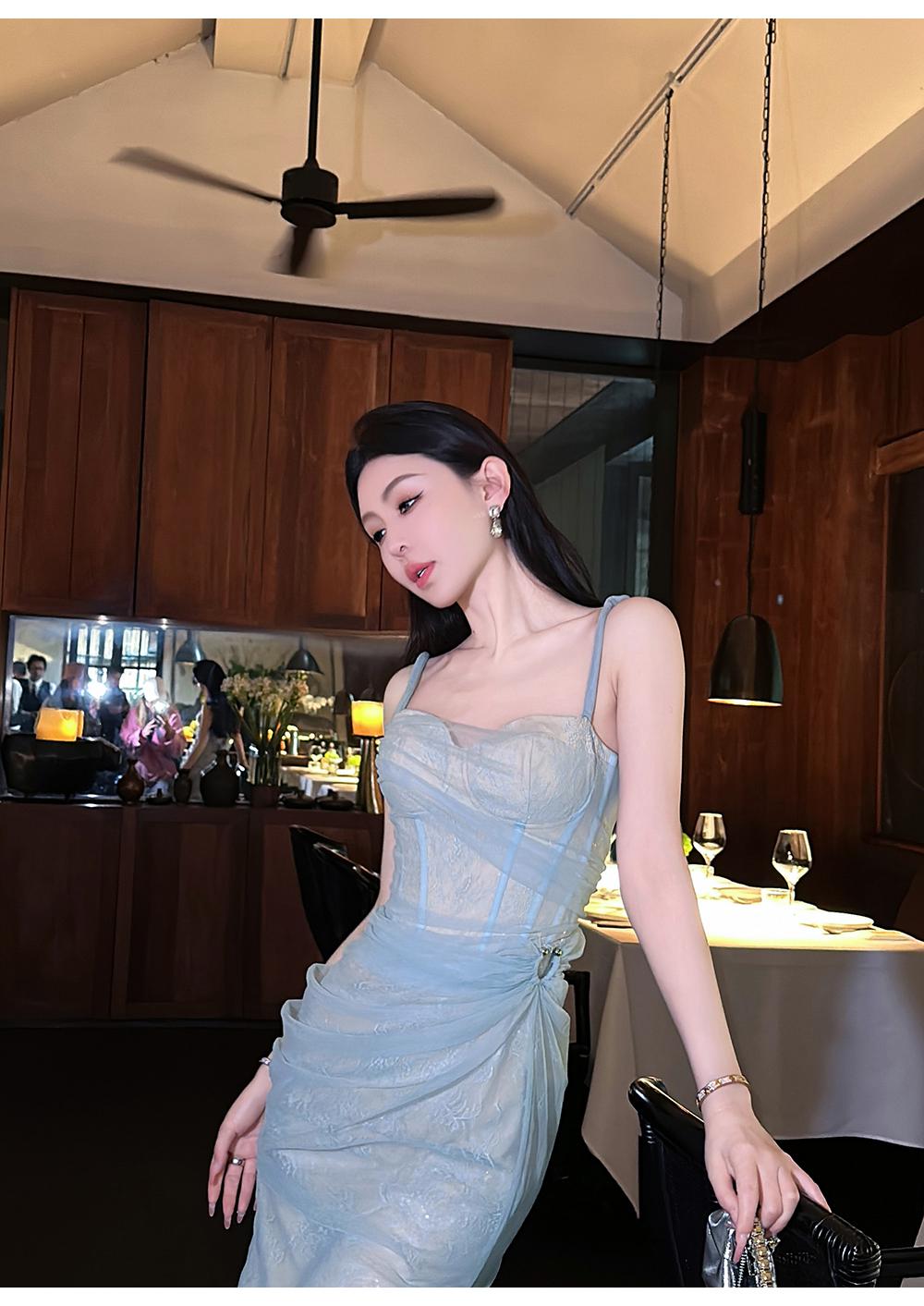余潇潇【深海精灵】优雅蕾丝带胸衣鱼骨圆环收腰抽褶连衣裙